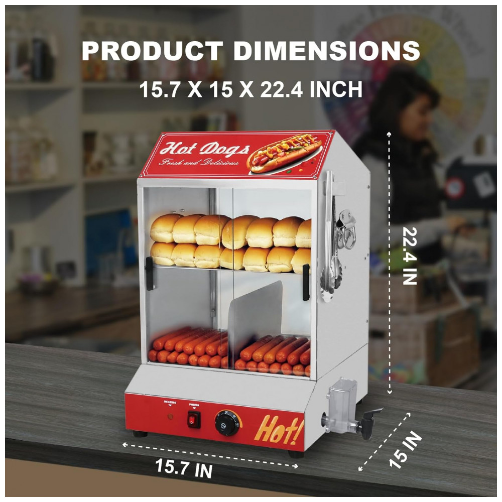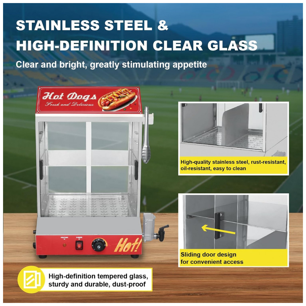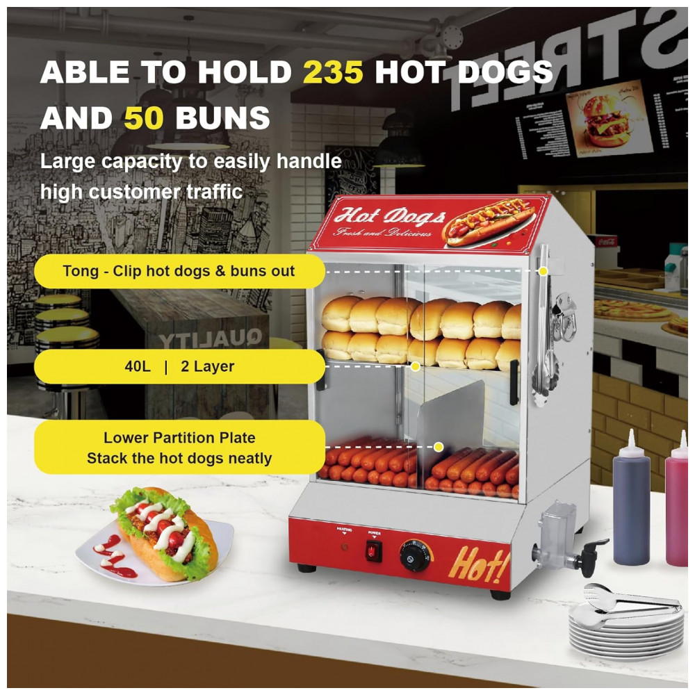Máquina de Vapor para Cachorro-Quente de 2 Andares 40L com Aquecedor de Pães Temperatura Ajustável Porta de Vidro Deslizante Nessxa