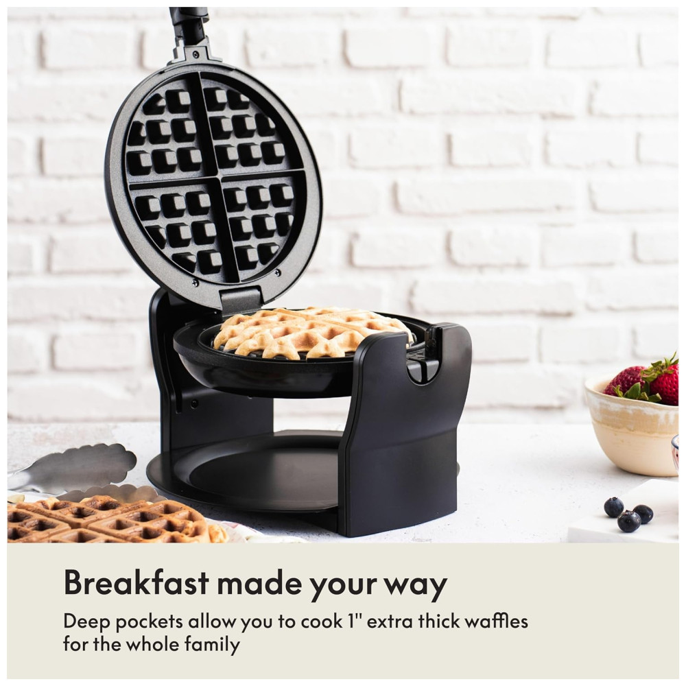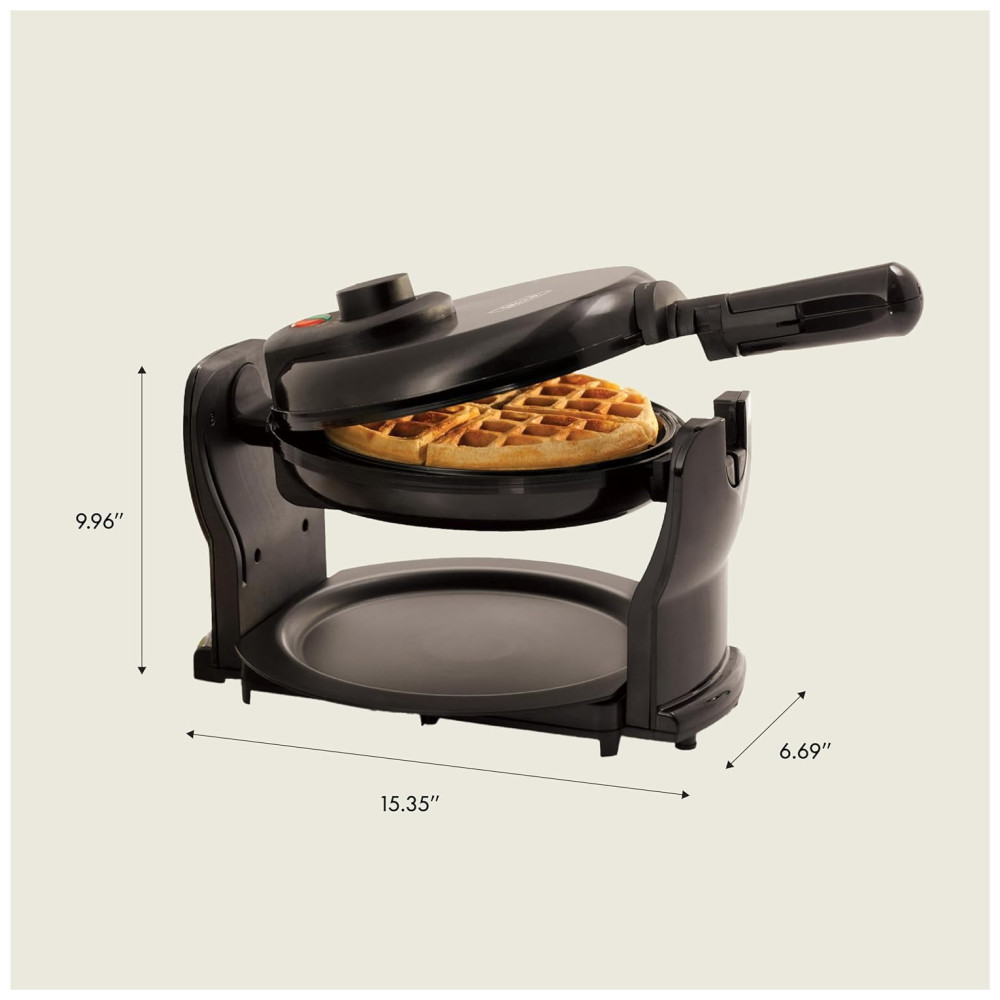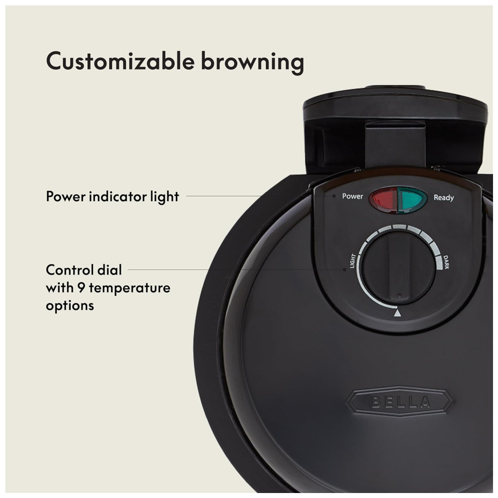 Cor Preto A fabricação de waffles belgas nunca foi tão fácil com a máquina rotativa de waffles BELLA. A função rotativa da máquina de waffles e o botão de controle de escurecimento garantem um cozimento uniforme e controlado, enquanto as placas antiaderentes e a bandeja removível permitem uma limpeza fácil