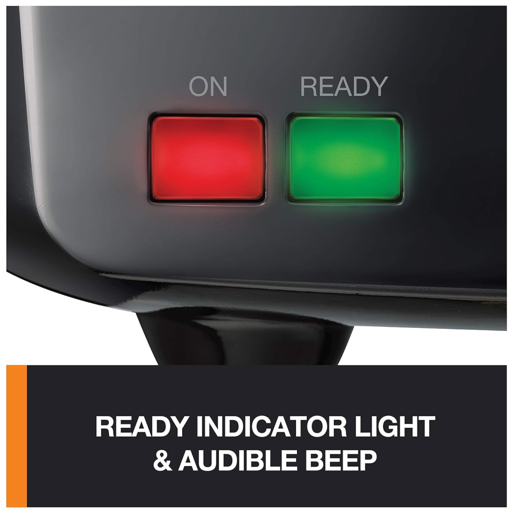 4 Fatias Asse até 4 waffles belgas quadrados de cada vez Sistema de liberação de vapor para waffles leves e fofos por dentro e crocantes por fora Bolsos extra profundos podem conter frutas frescas, xarope de bordo e muito mais