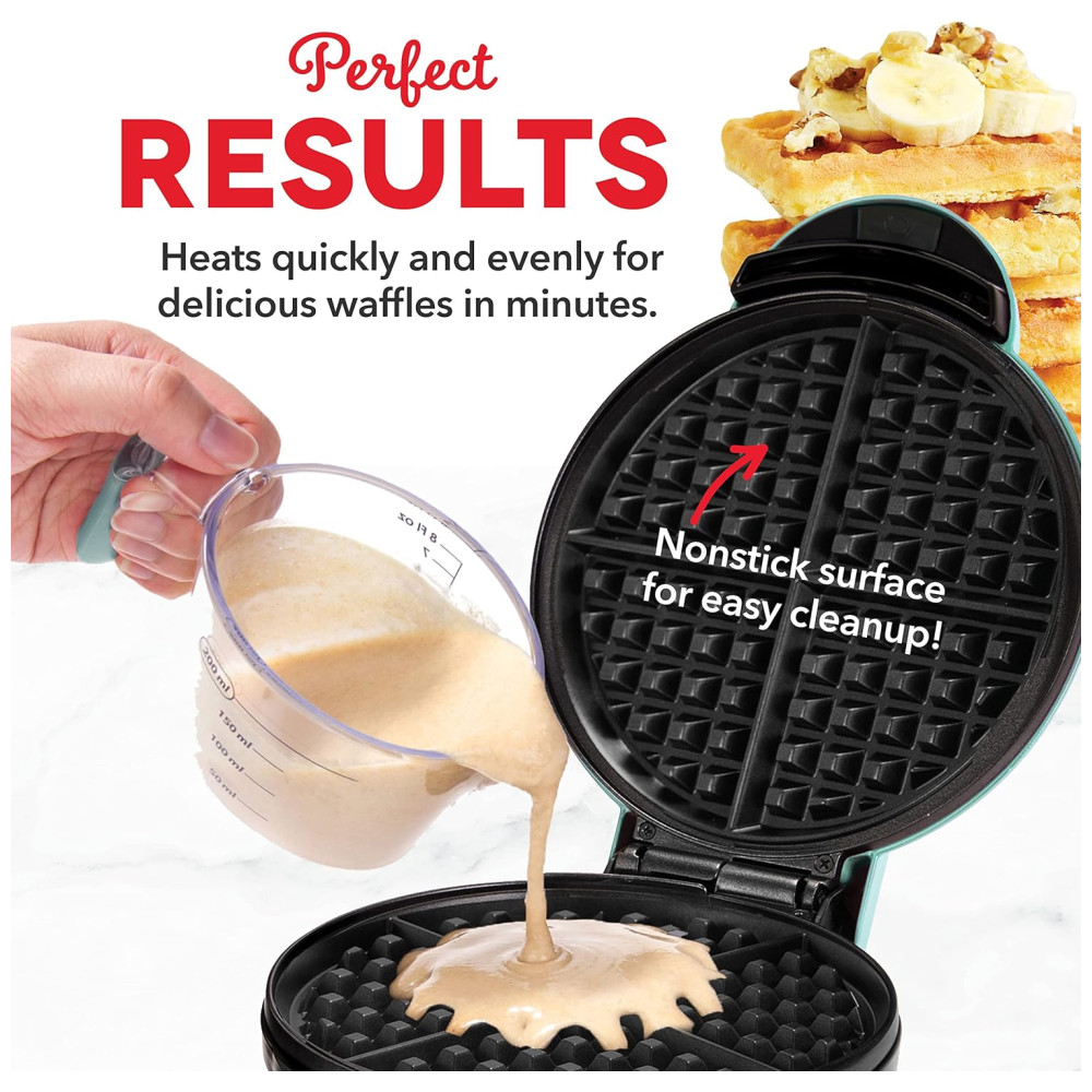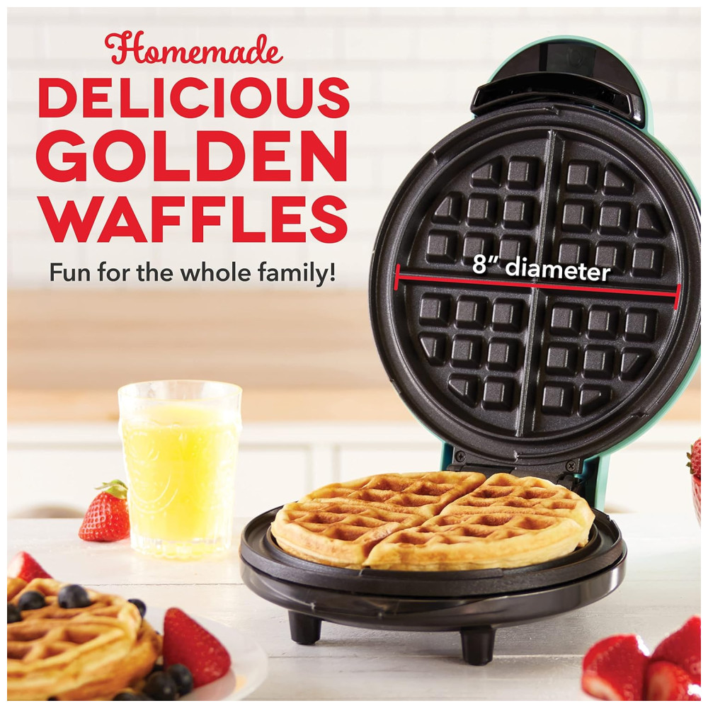 Cor Aqua. Faça quatro waffles deliciosos separados em minutos, usando o Express Waffle Maker. Uma superfície de cozimento antiaderente de 8 polegadas de diâmetro aquece de maneira uniforme e rápida, resultando em waffles perfeitamente cozidos. Experimente receitas diferentes e faça batatas fritas ou paninis caseiros usando o Express Waffle Maker. Basta conectar o seu aparelho e você está pronto para cozinhar