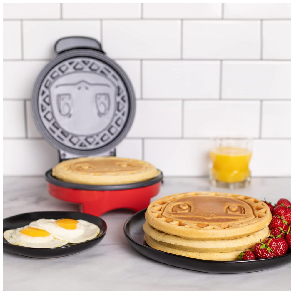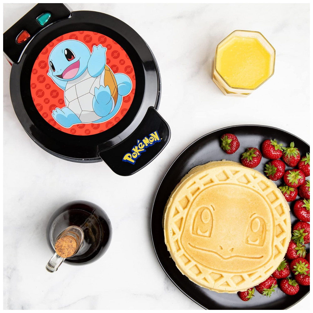 Faça waffles Squirtle em casa. Despeje a massa, abaixe a tampa e, antes que você perceba, há waffles Pikachu, prontos para manteiga e calda.