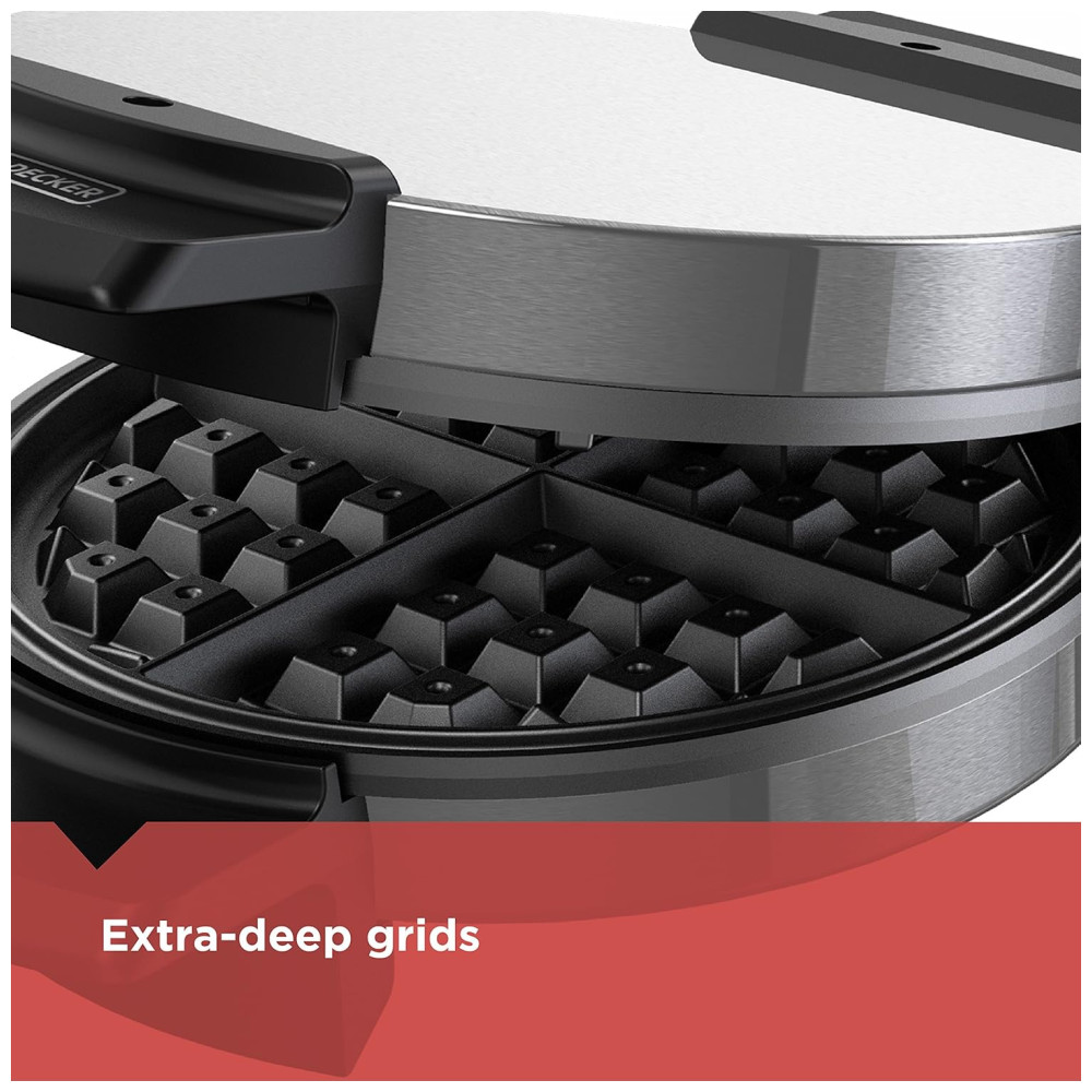 O café da manhã é melhor com esta máquina de waffles de aço inoxidável de estilo belga. As grelhas antiaderentes extra profundas fazem waffles grossos e fofos com bastante espaço para todas as suas coberturas favoritas. Além disso, os pratos antiaderentes são fáceis de limpar e são perfeitos para fazer uma variedade de alimentos experimente batatas fritas, sanduíches grelhados, brownies, rolos de canela e muito mais O versátil BLACK DECKER Belgian Waffle Maker permite criar novas guloseimas e descobrir favoritos clássicos
