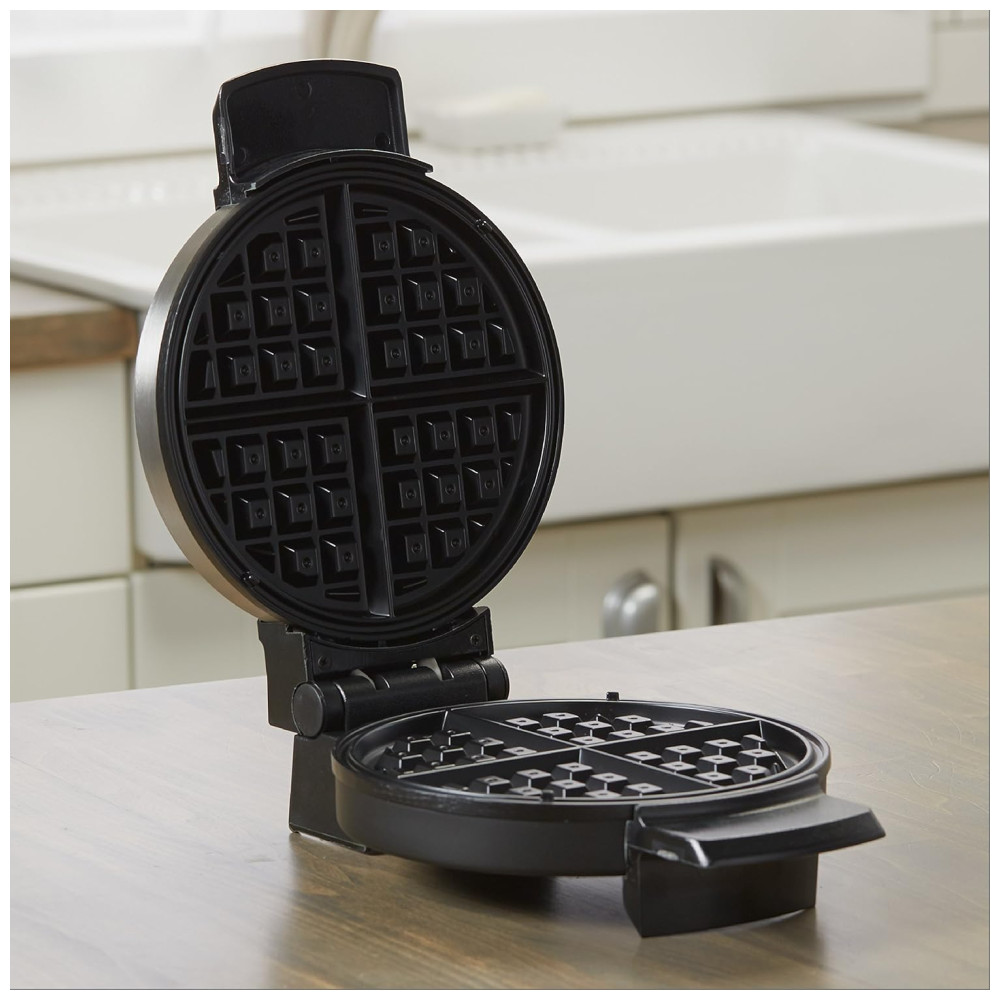 Waffles de estilo belga de 18cm. Crie waffles redondos de estilo belga de 18cm clássicos, o tamanho perfeito para uma porção Pratos antiaderentes Os waffles deslizam facilmente graças às placas antiaderentes, que são simples de limpar Cabo Cool Touch O estendido alça permite que você abra com segurança a máquina de waffles enquanto está quente Luz indicadora de pronto Mostra quando a máquina de waffles está pré aquecida e pronta para cozinhar zenamento vertical O design que economiza espaço permite o zenamento vertical no gabinete.
