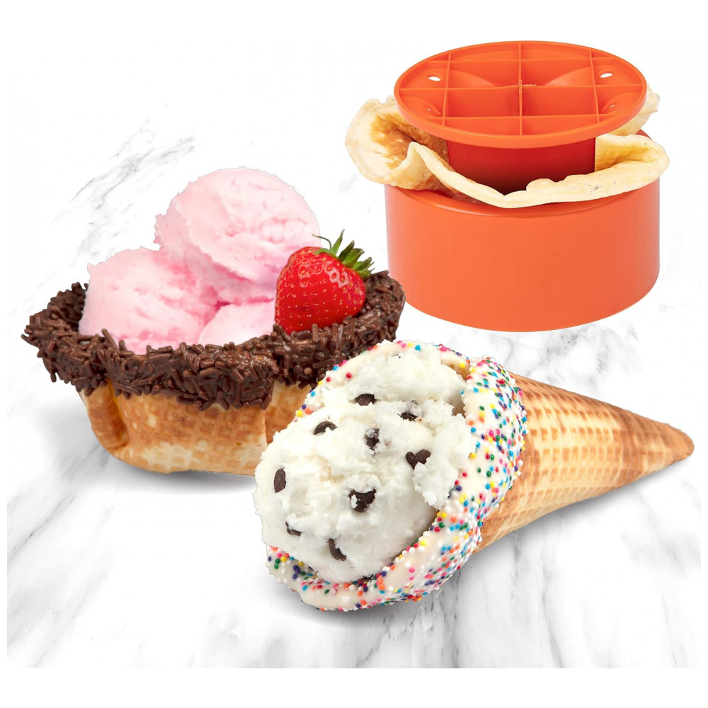 Waffle Bowl Shaper O único fabricante de tigela que inclui uma prensa de tigela para formar suas tigelas de waffle.