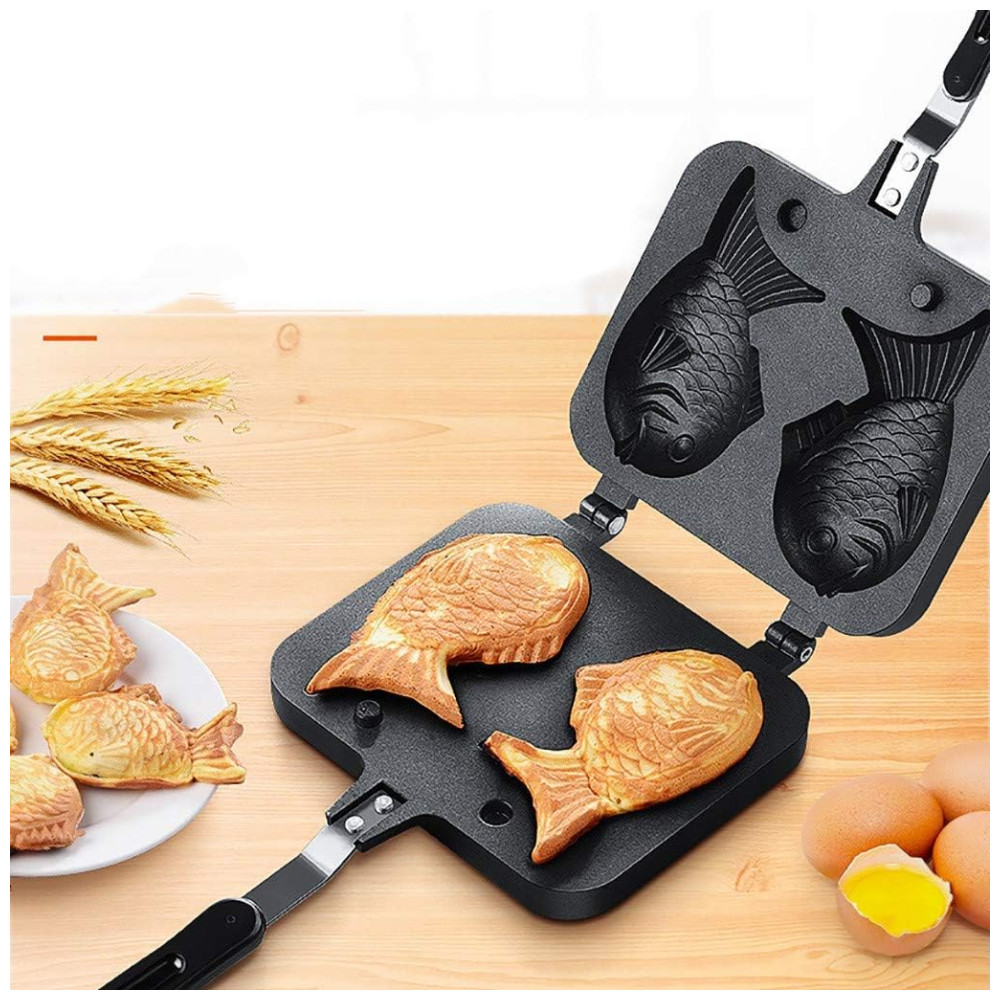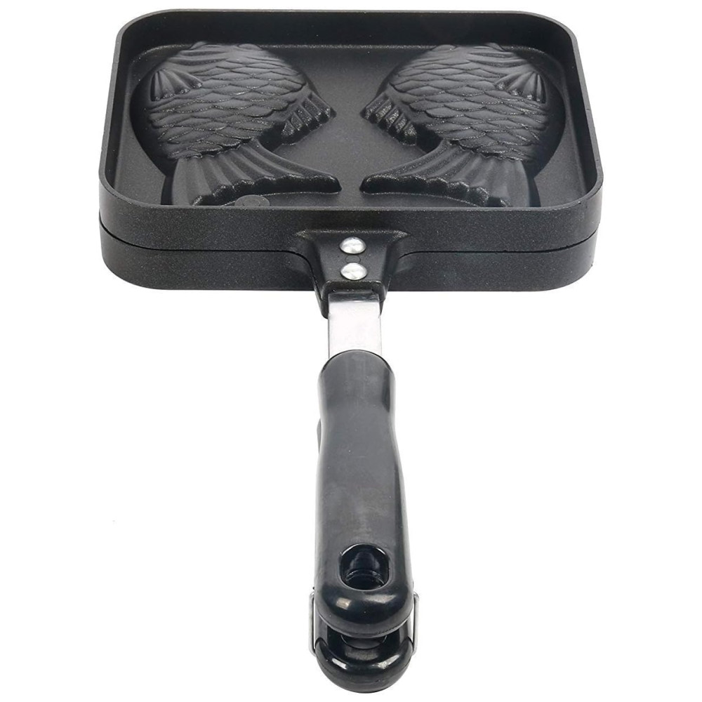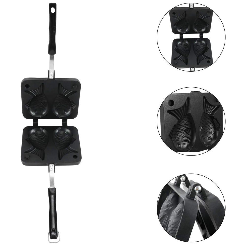 Tamanho Fish Mold Especificações Material liga de alumínio revestimento antiaderente Cor preto Safe e saudável, para fazer bolos , waffles em forma de peixe de ciclídeos. 2 design de bandeja, feito de material de alta qualidade, conveniente, não tóxico e de usar. Incluído no Pacote 1 x panela de Taiyaki em forma de peixe atenção é com segurança no fogão a gás combustível, mas não é adequado para fogão de indução
