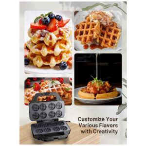 Prepare até 8 mini waffles de tamanho perfeito para crianças, lanches ou festas de uma vez. Ótimo para manhãs corridas, brunches de fim de semana ou divertidos cafés da manhã em família. Todos ganham seu waffle, sem precisar esperar! Compacta, leve e fácil de armazenar, foi projetada para cozinhas pequenas, apartamentos, dormitórios ou RVs, ocupando pouco espaço no balcão. Suas placas antiaderentes de alta qualidade evitam que os waffles grudem, facilitando a limpeza. Aquece rapidamente e cozinha de forma uniforme, proporcionando waffles dourados por fora e macios por dentro. Versátil e divertida, ideal para envolver as crianças na cozinha, sendo perfeita para lanches, festas, brunches ou presentear.