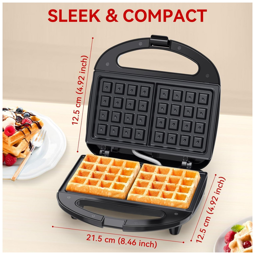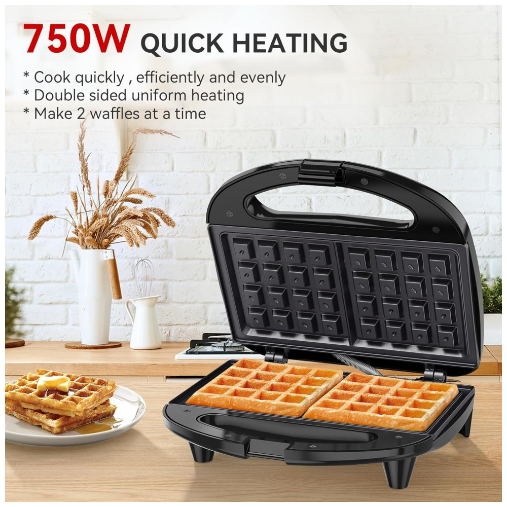Com uma potência eficiente de 750W, a máquina de waffle OSTBA aquece rapidamente, permitindo que você faça waffles deliciosos em pouco tempo, ideal para manhãs corridas. Possui placas duráveis antiaderentes, garantindo que os waffles saiam facilmente e a limpeza seja rápida. O design compacto e elegante economiza espaço na bancada e adiciona um toque moderno à sua cozinha. Garante distribuição de calor uniforme para waffles sempre dourados e crocantes. Prioriza sua segurança com alças frias ao toque e pés antiderrapantes.