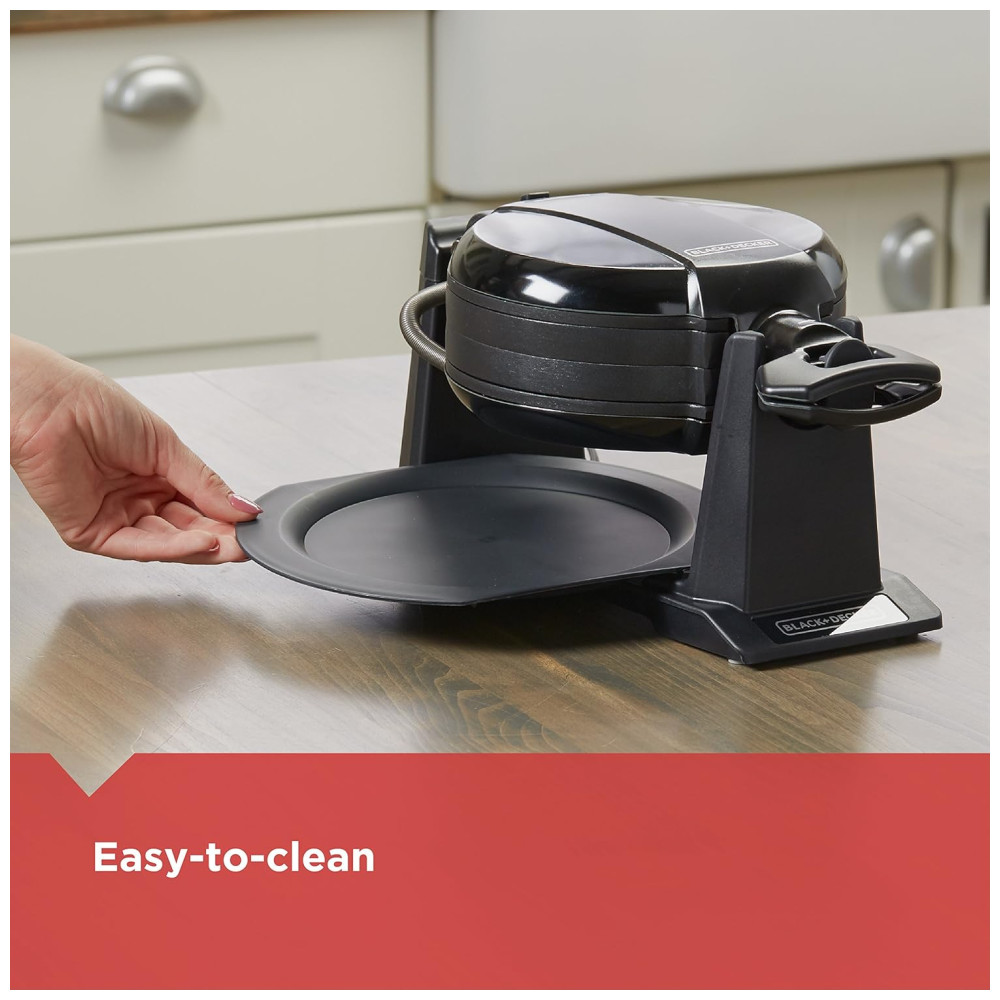Placas de cozimento duplas dois conjuntos de placas de waffle de dupla face permitem que você cozinhe dois waffles deliciosos ao mesmo tempo Sistema de waffle giratório O sistema de cozimento especial permite que a massa seja igualmente distribuída para waffles fofos e cozidos uniformemente Waffles de estilo belga O grades profundas antiaderentes produzem waffles de estilo belga com espaço para todos os seus recheios favoritos Revestimento antiaderente durável Desfrute de uma limpeza fácil com a superfície antiaderente, que também reduz a necessidade de excesso de manteiga e óleo Bandeja de gotejamento mantém suas bancadas limpas com o bandeja coletora, que pode ser lavada com pano úmido.