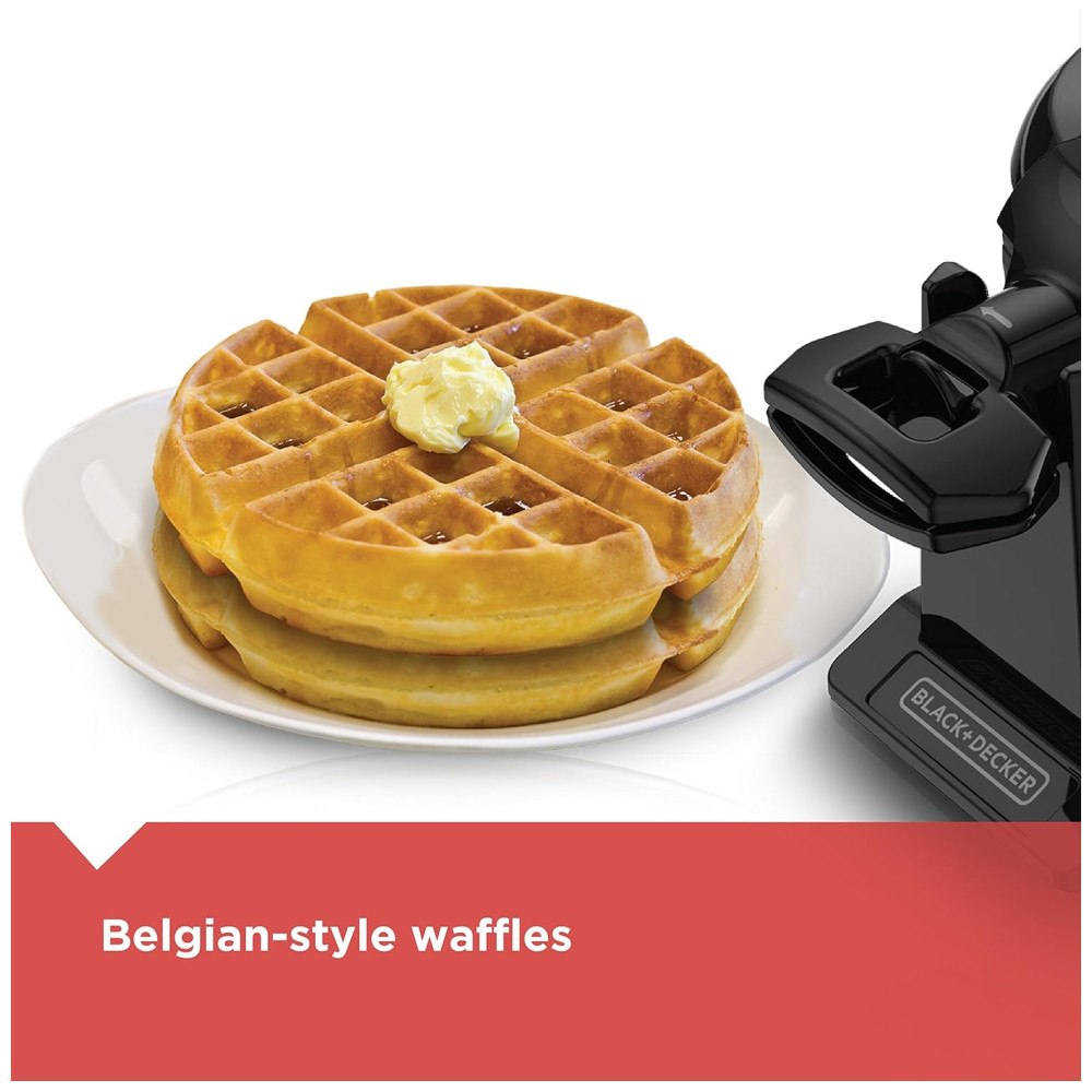 Descrição do Produto Duplique os waffles e duplique o sabor com a Máquina Rotativa de Waffles BLACK DECKER Pratos duplos permitem que você faça dois waffles de uma vez, enquanto o sistema clássico de gire e cozinhe cria textura e sabor incríveis. Além disso, as placas de waffle antiaderentes têm grades extra profundas para abrir espaço para todas as suas coberturas favoritas. O BLACK DECKER tornou saborosos cafés da manhã muito mais fáceis. História da marca por BLACK DECKER
