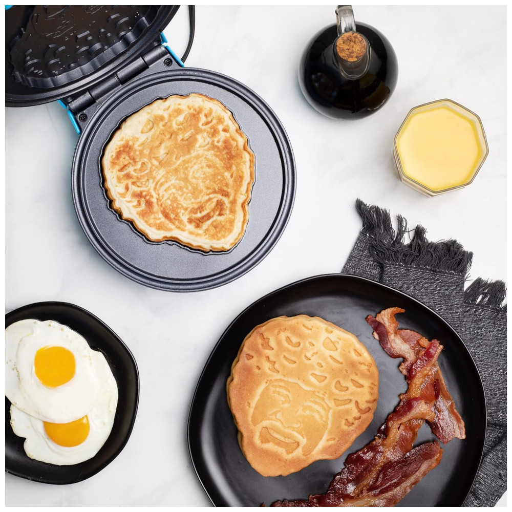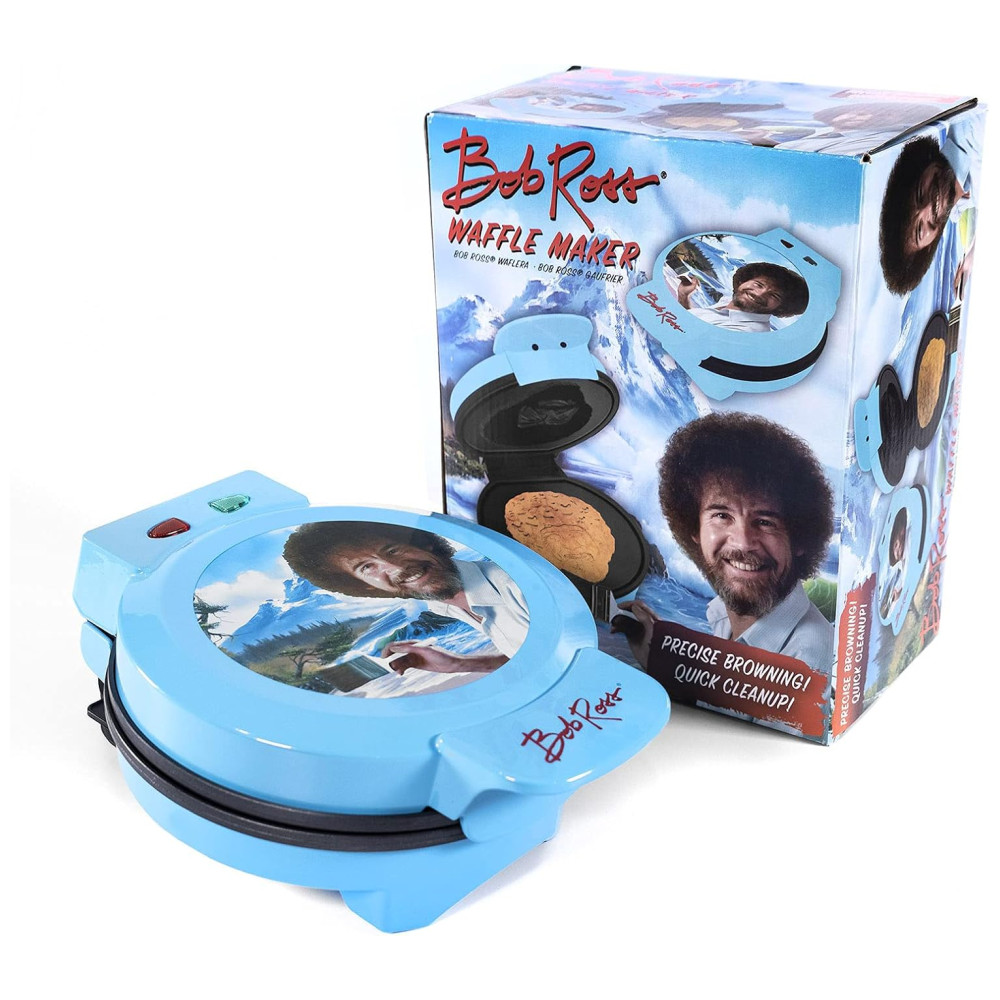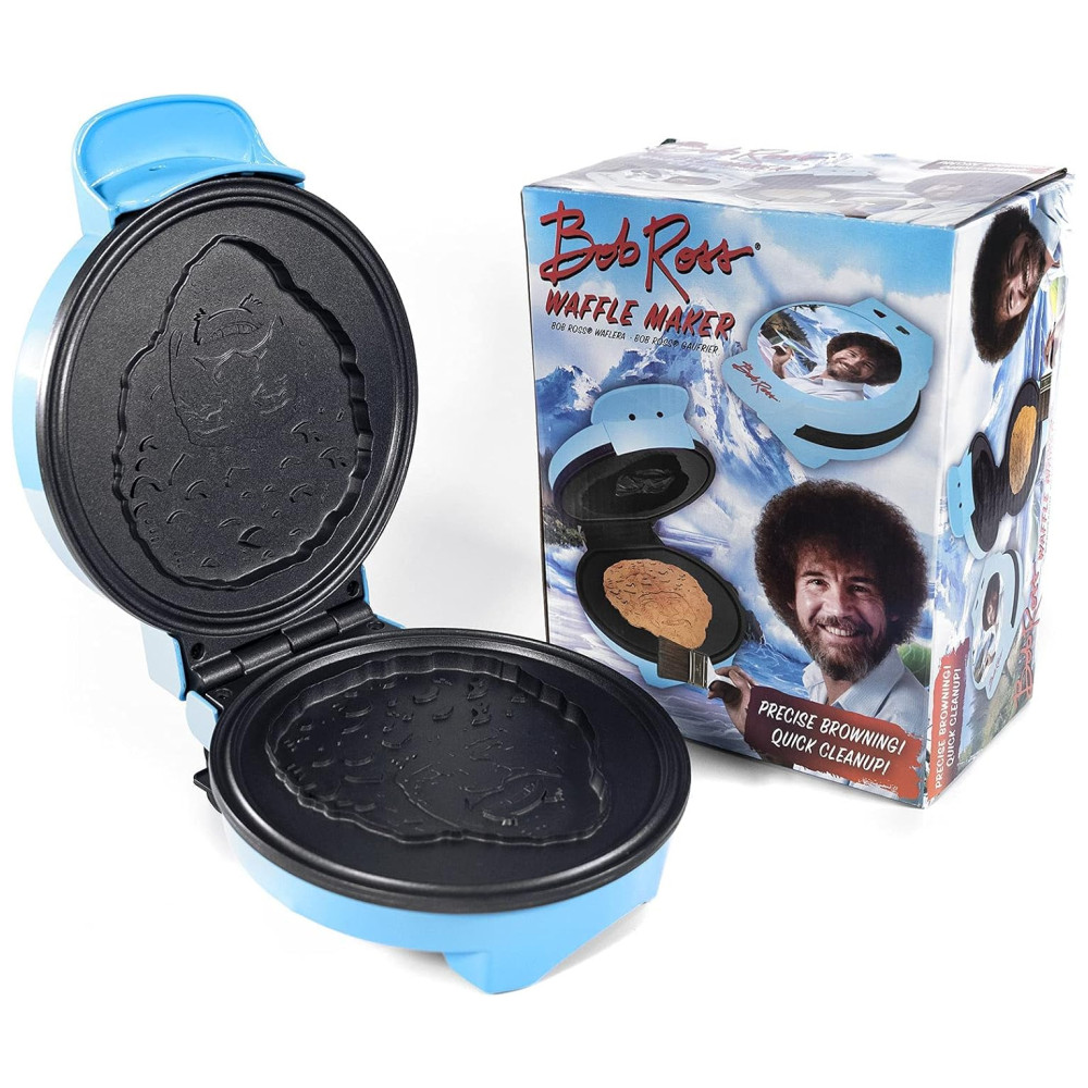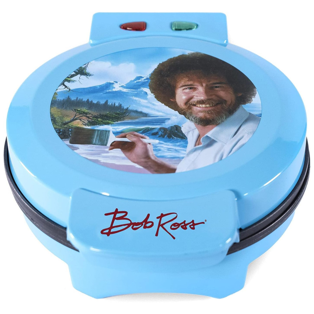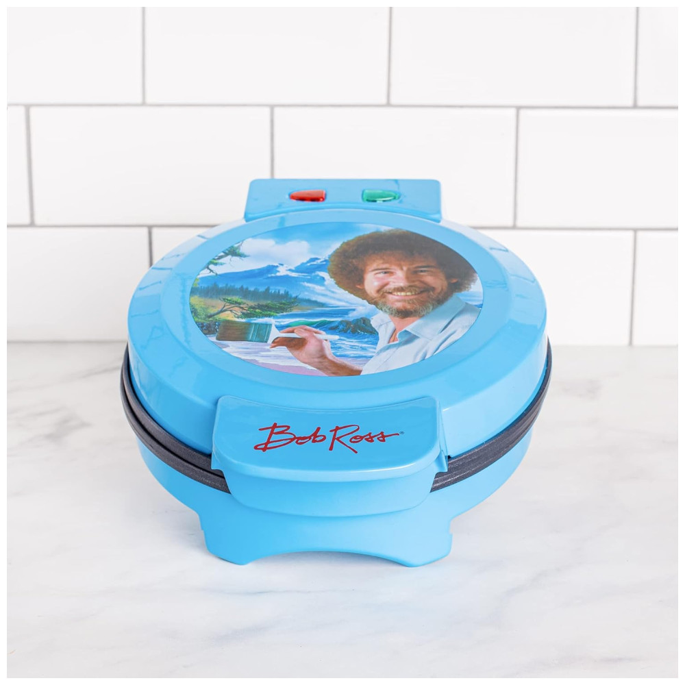 Transforme seus cafés da manhã com um toque artístico usando a máquina de waffles Bob Ross da Uncanny Brands! Prepare waffles pequenos e felizes em casa com este gadget encantador. Basta despejar a massa, abaixar a tampa e, em pouco tempo, você terá um waffle com o icônico rosto sorridente de Bob Ross, pronto para ser coberto com manteiga e xarope.