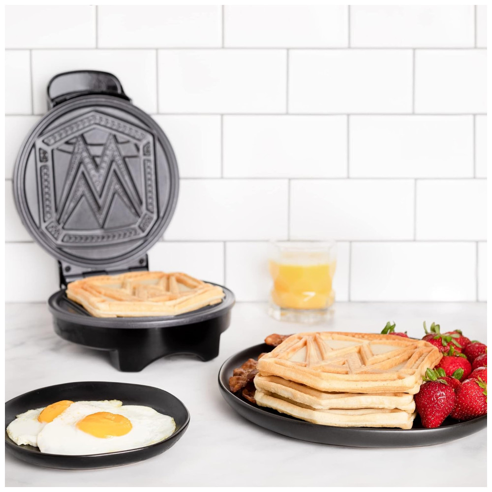 Comece seu café da manhã como um campeão com a Máquina de Waffle WWE Championship Belt da Uncanny Brands. Este incrível ferro de waffle cria waffles em forma de escudo que imitam o cobiçado cinturão de campeão ostentado por superstars como John Cena, The Rock e “Stone Cold” Steve Austin. Com luzes indicadoras que mostram quando é hora de despejar a massa e quando os waffles estão prontos, você sempre terá waffles perfeitos.