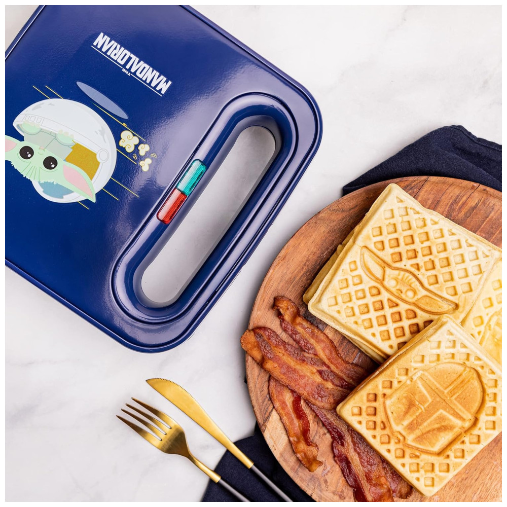 Máquina de Waffle Tema Star Wars Mandalorian com Revestimento Antiaderente 110V 750W Uncanny Brands Azul