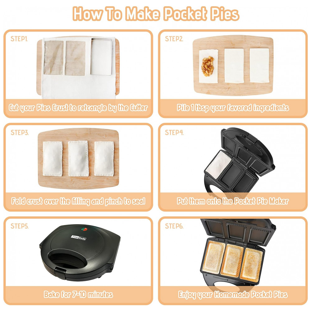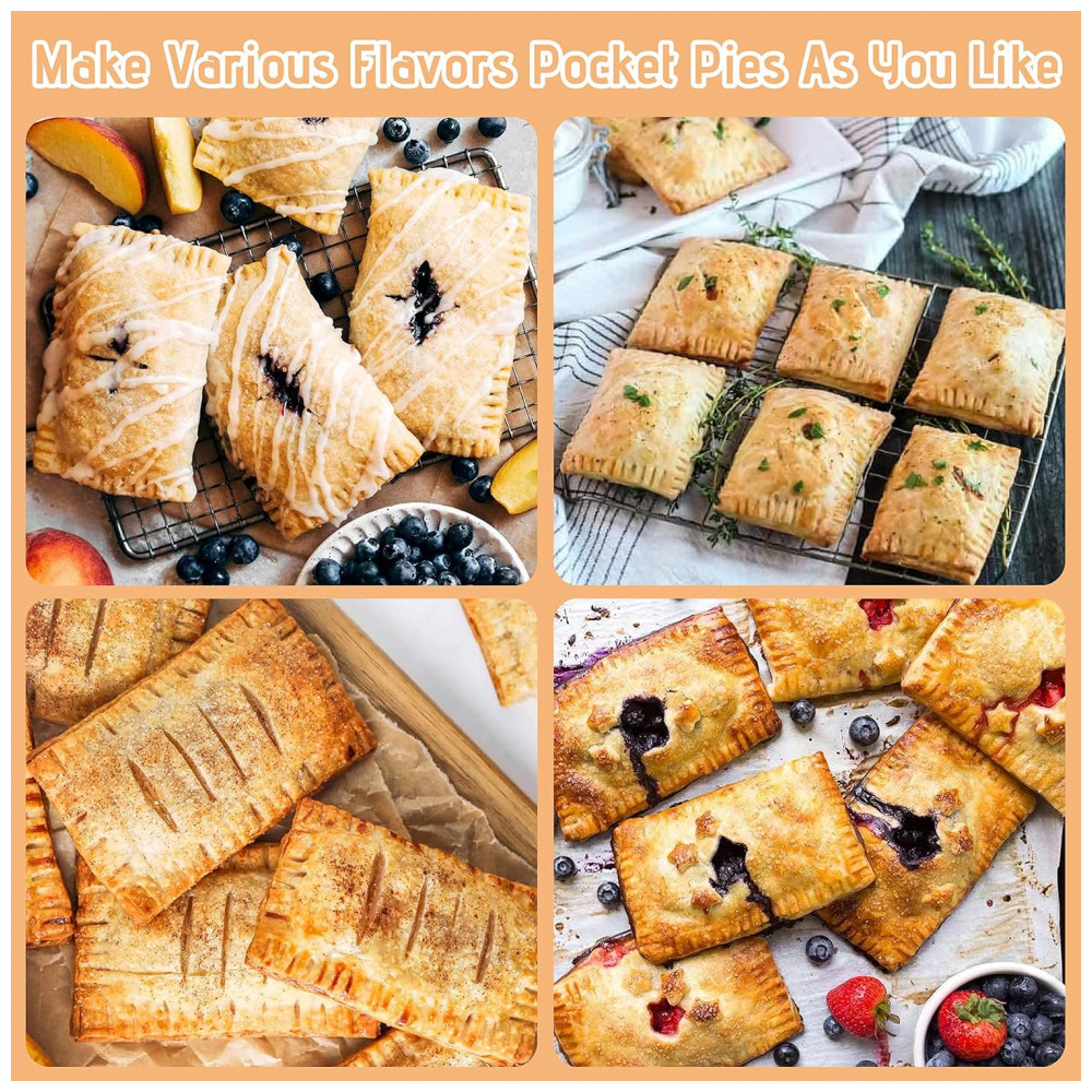 FÁCIL DE USAR: O pacote inclui um cortador de crosta, para que você possa medir o tamanho perfeito da crosta para suas tortas de bolso sempre.