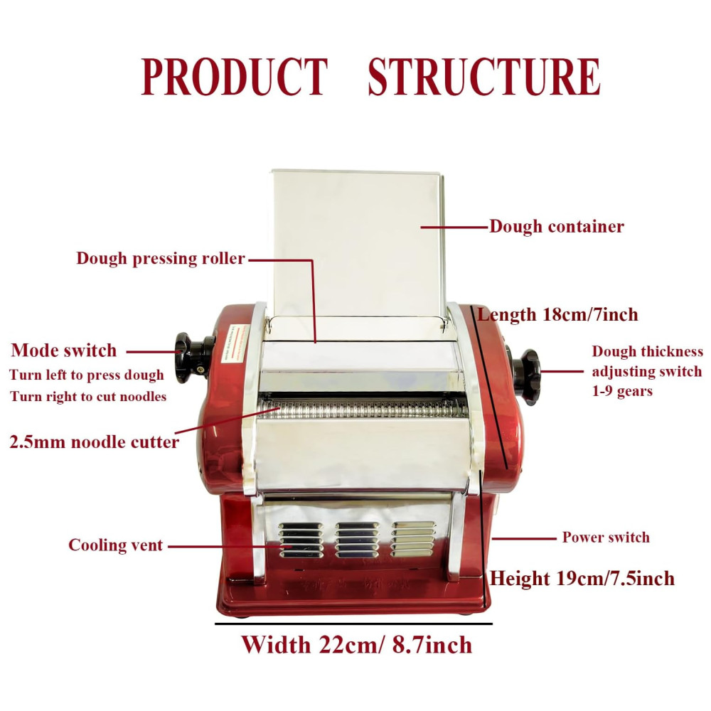 Máquina Elétrica de Fazer Macarrão Lâmina Embutida de 25 mm Largura da Massa 14 cm Espessura Ajustável de 034 mm SHILINTONG