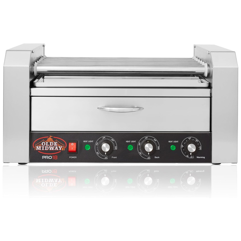 A Olde Midway é conhecida na indústria por aparelhos especiais finamente elaborados que combinam design elegante com durabilidade excepcional por um ótimo valor. A grelha de cachorro quente de classe comercial PRO18 é construída em aço inoxidável de alta qualidade e possui uma gaveta de aquecimento de pão embutida. É uma opção prática e eficiente para cozinhar e grelhar em qualquer lugar, sem a bagunça e o incômodo de uma churrasqueira a gás convencional de tamanho grande.