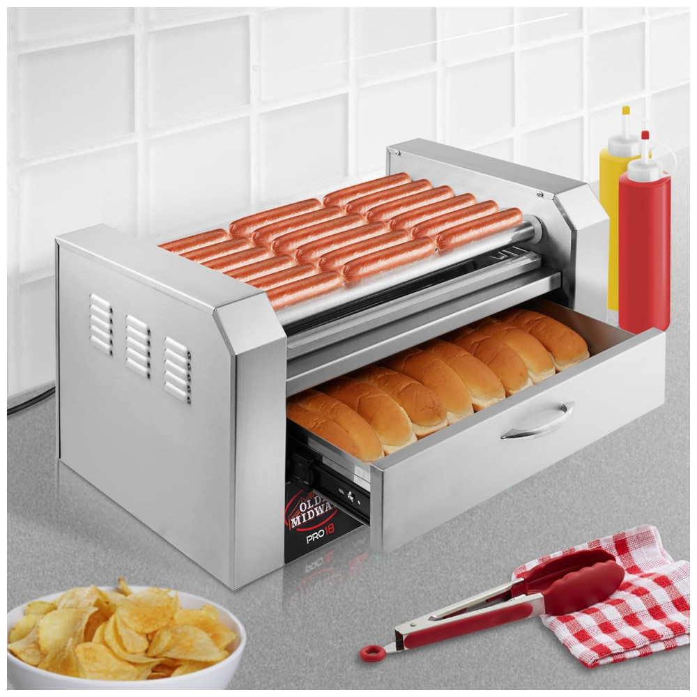 A máquina elétrica de enrolar cachorro quente da Olde Midway é perfeita para preparar até 18 salsichas de uma só vez, graças aos seus 7 rolos de aço inoxidável antiaderentes. Com 1100 watts de potência, é ideal tanto para uso comercial quanto doméstico, sendo indicada para churrascos de empresas, lojas de conveniência, cinemas, mercados de agricultores, barracas de concessão, festas de aniversário, eventos esportivos e muito mais.