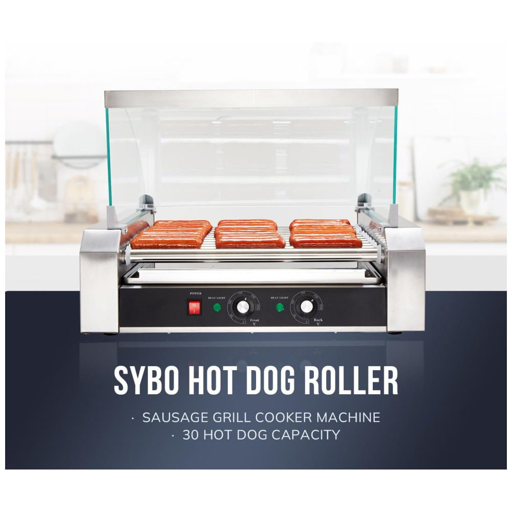 Máquina para Cachorro Quente em Aço Inoxidável com 11 Rolos até 30 Salsichas 110V 1430W SYBO Prata