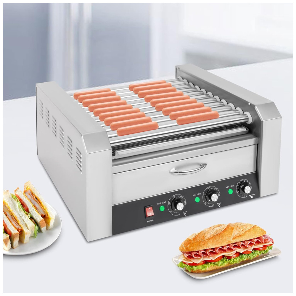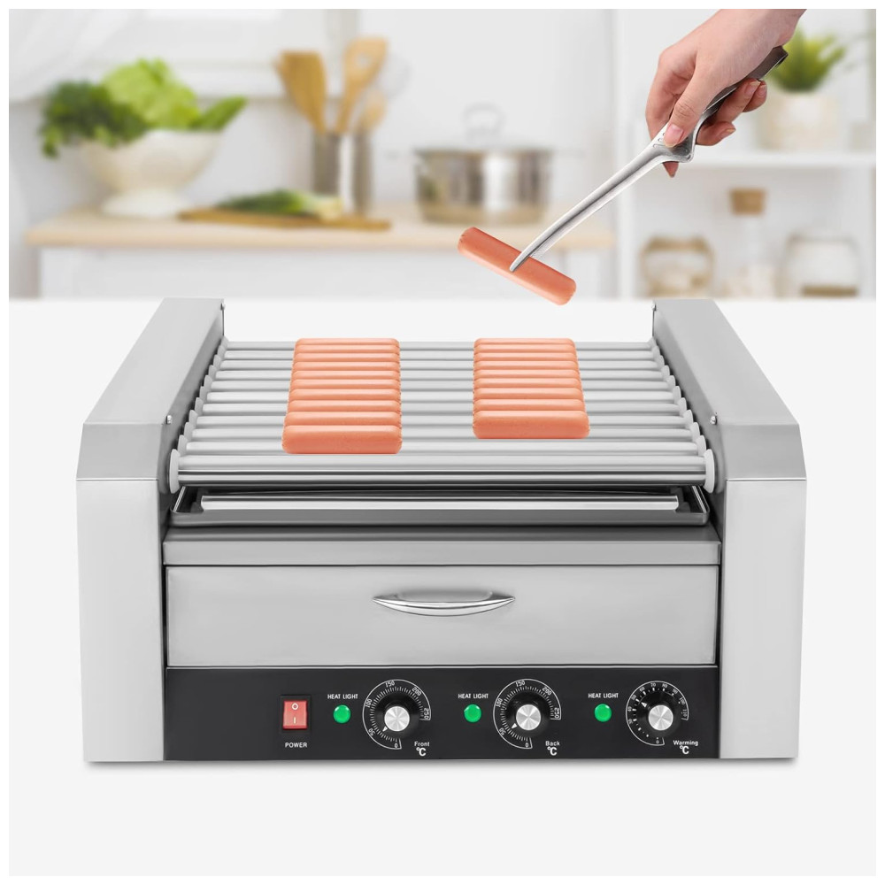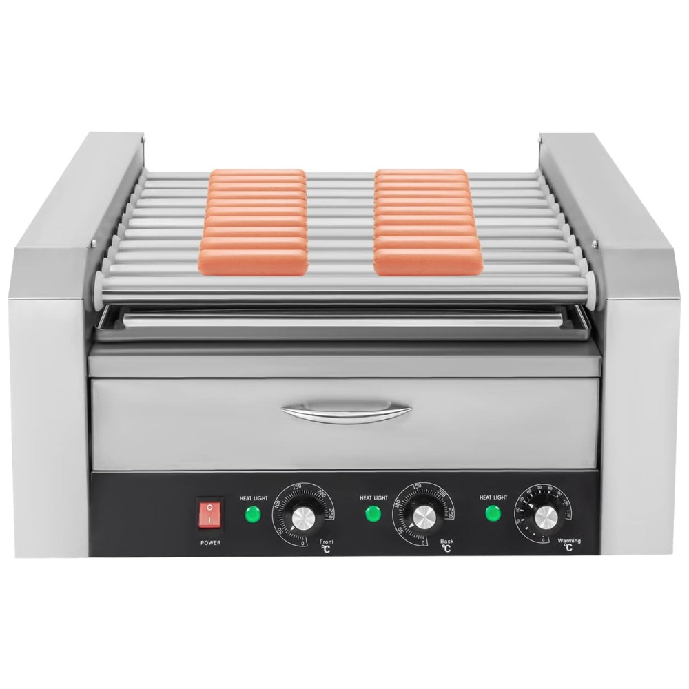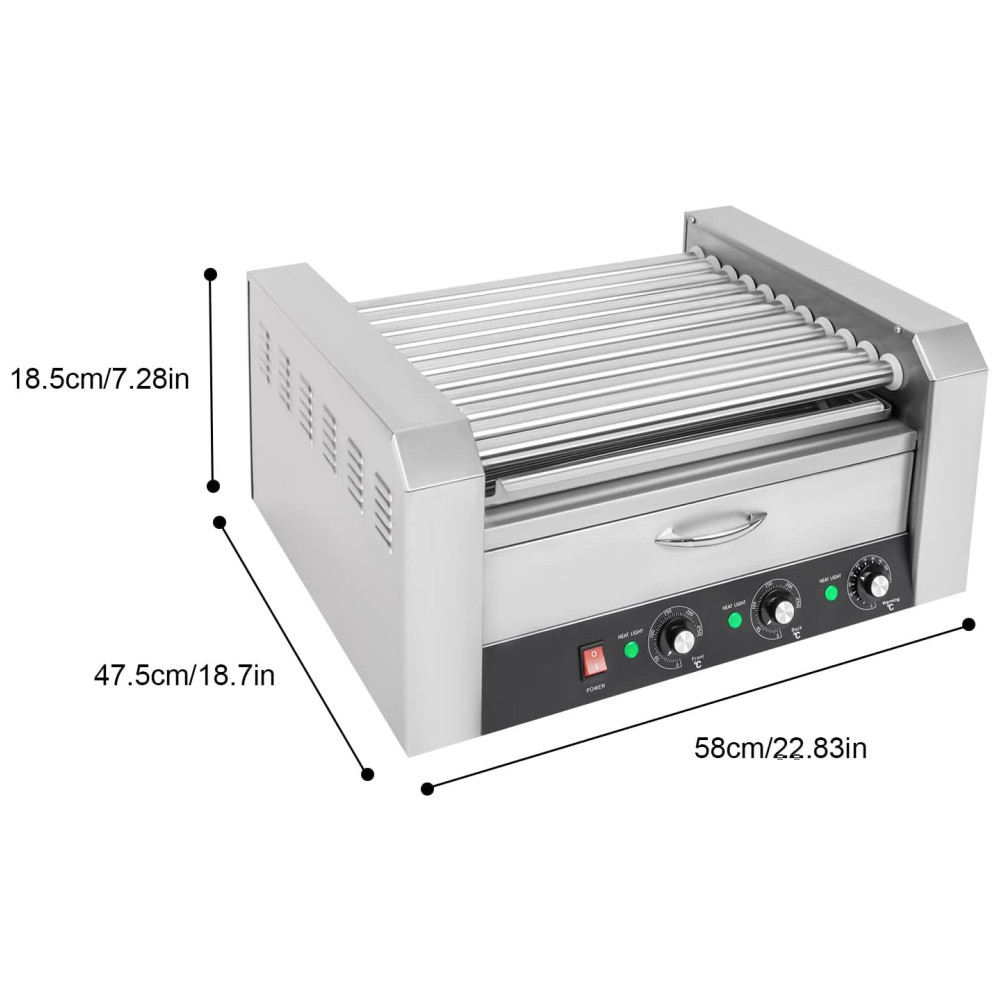 A máquina de rolo de cachorro quente é perfeita para quem deseja oferecer uma opção rápida e fácil de comida para seus clientes. Com 11 rolos giratórios de aço inoxidável 201, é possível assar cerca de 30 cachorros quentes padrão por vez, garantindo eficiência e praticidade. Além disso, a gaveta incorporada com controle independente mantém os alimentos aquecidos.