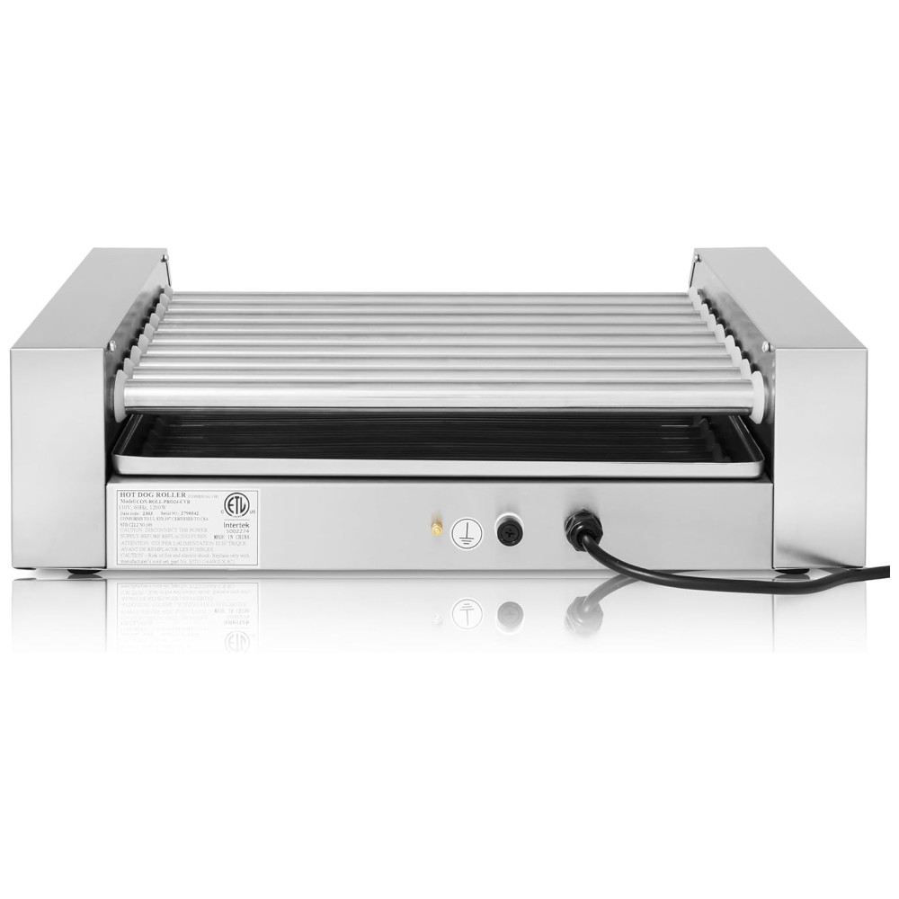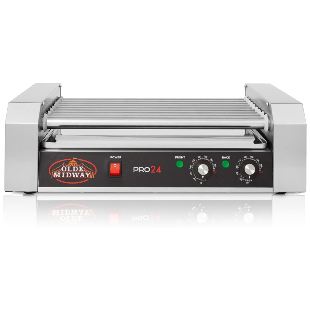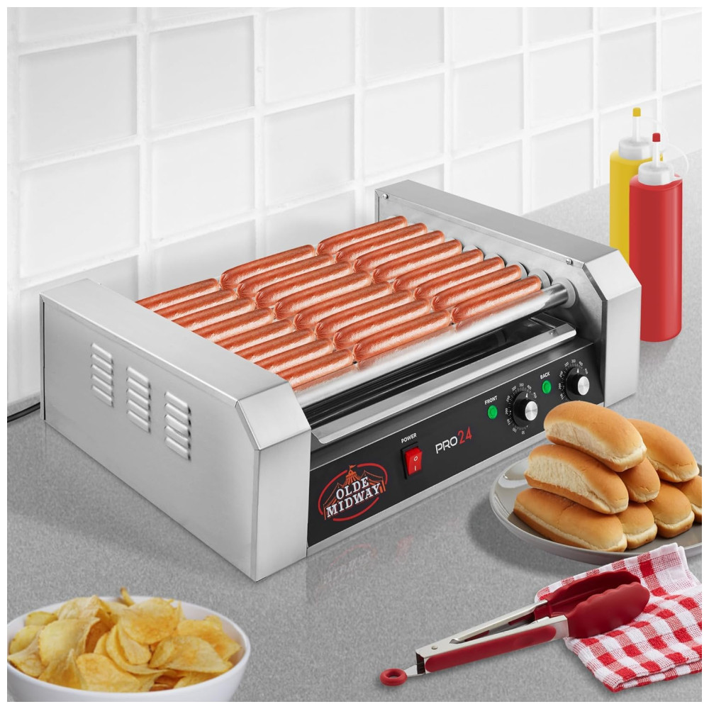 A máquina elétrica de cachorro quente da Olde Midway é ideal para uso comercial e doméstico, permitindo cozinhar até 24 cachorros quentes de uma vez em seus 9 rolos antiaderentes de aço inoxidável. Com uma potência de 1200 watts, essa máquina é facilmente portátil e pode ser levada para qualquer lugar, sem o incômodo de uma churrasqueira a gás convencional de tamanho grande.