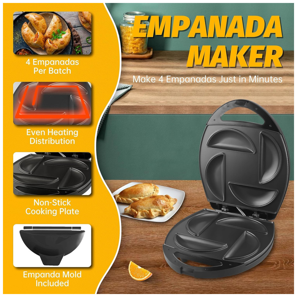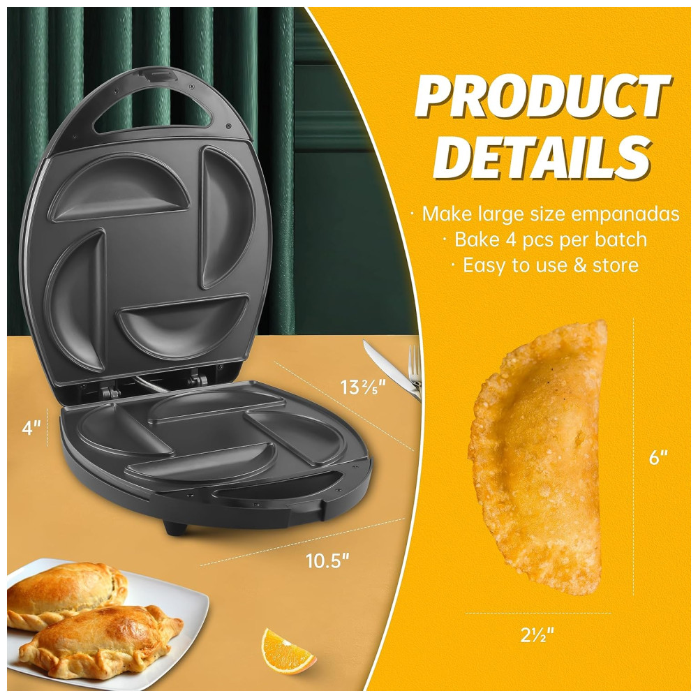 MAIOR E MAIS: As placas de cozimento assam 4 pedaços de empandas de por lote, e as empanadas saem com 2, de espessura. Mais satisfatório. Perfeito para uso familiar.