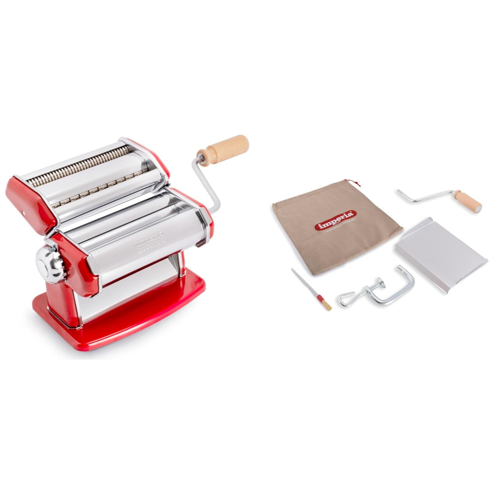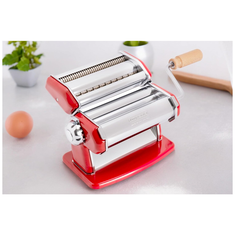 Máquina para Fazer Macarrão Vermelha 100% Fabricada na Itália Construção Resistente em Aço Manivela Fácil Limpeza com Escova Imperia