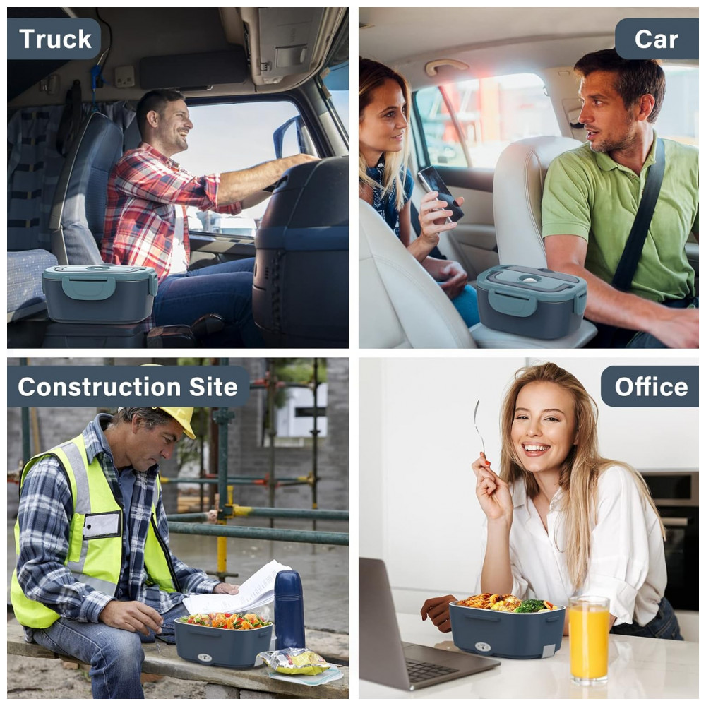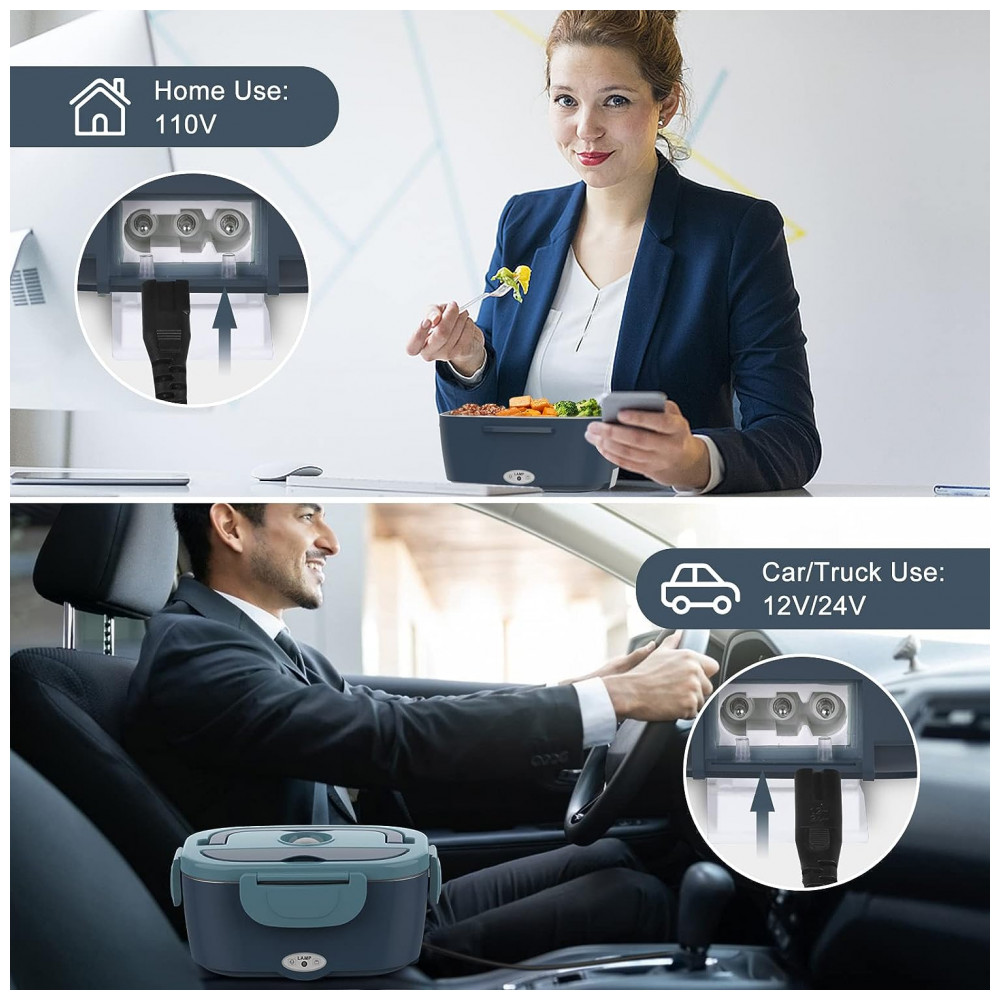 2 em 1 carro e uso doméstico lancheira de aquecimento elétrico contém dois plugues diferentes um para trabalho, casa 110 v, um para carro, caminhão 12 v, 24 v. Pessoas que estão na estrada para almoçar ou sem acesso a micro ondas, como motorista de caminhão, , funcionário de escritório, podem desfrutar de comida caseira quente no carro, escritório.