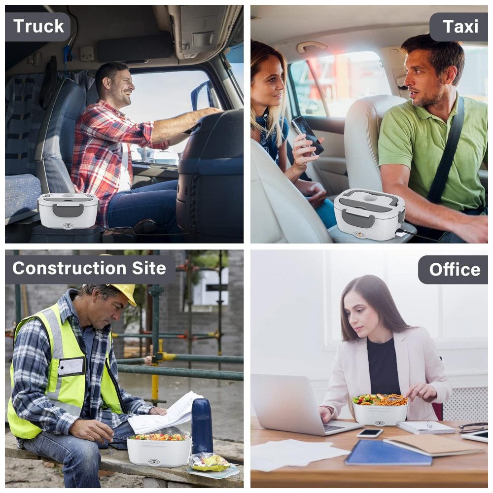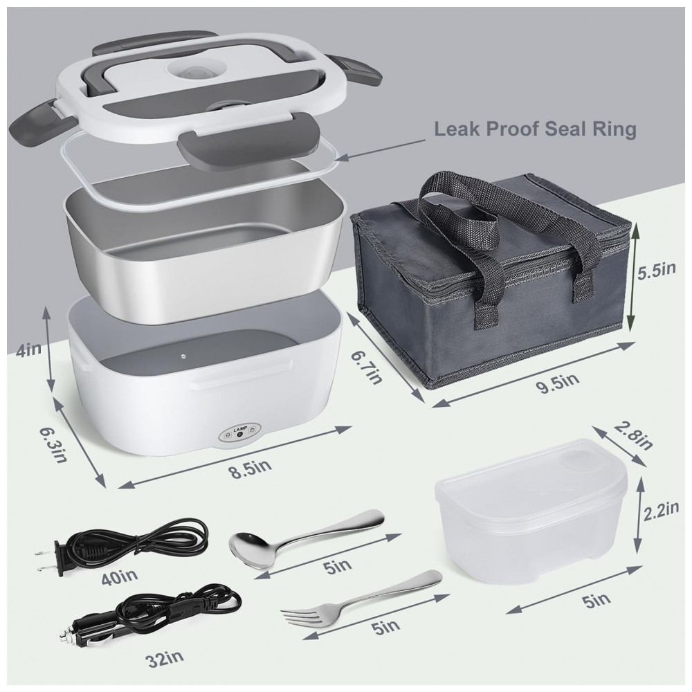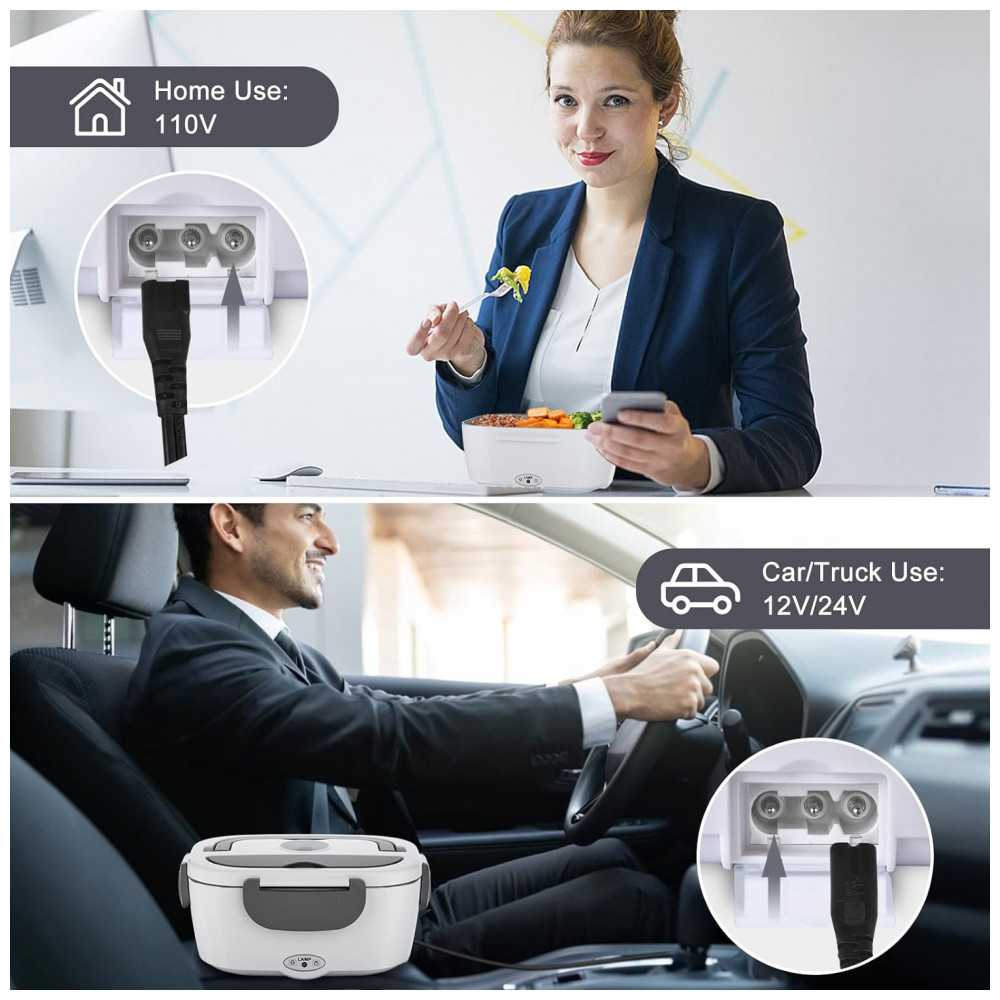 2 em 1 carro e uso doméstico lancheira de aquecimento elétrico contém dois plugues diferentes um para trabalho, casa 110 v, um para carro, caminhão 12 v, 24 v. Pessoas que estão na estrada para almoçar ou sem acesso a micro ondas, como motorista de caminhão, , funcionário de escritório, podem desfrutar de comida caseira quente no carro, escritório.