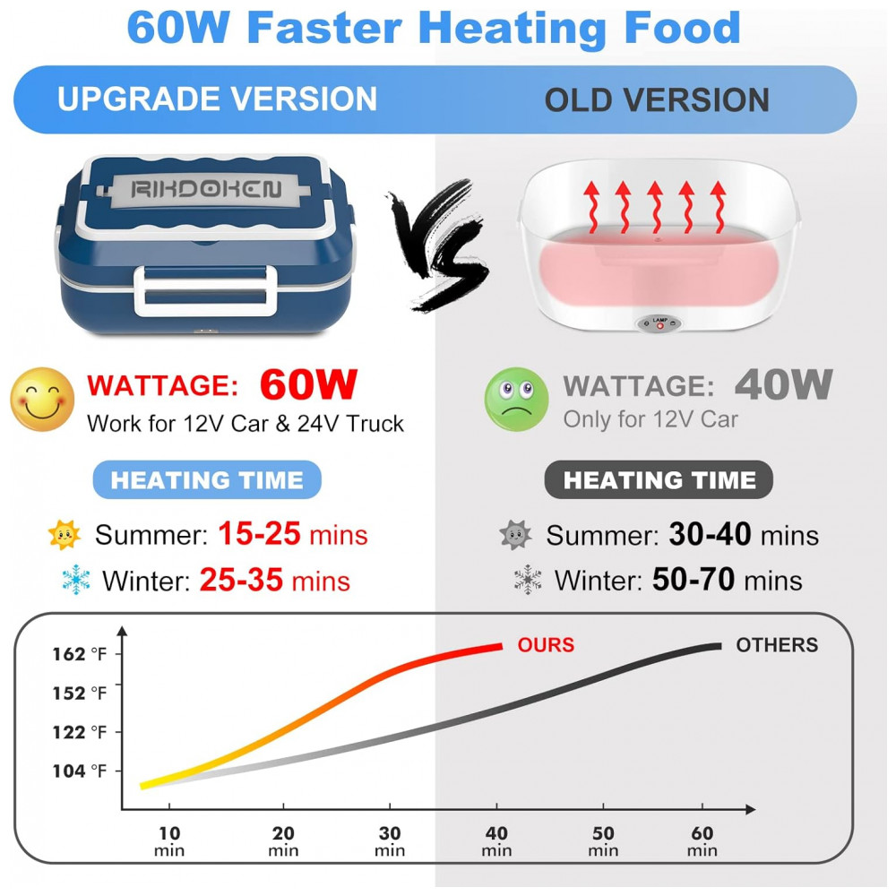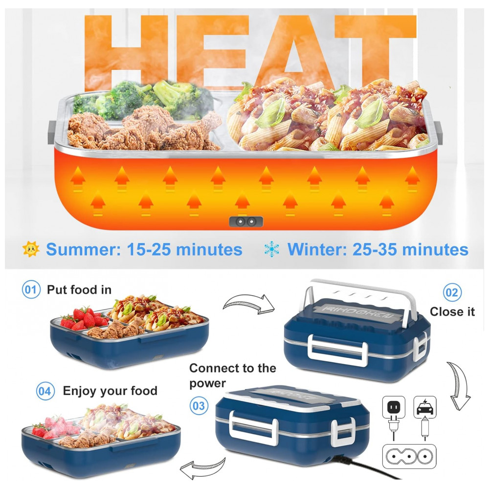 Aquecimento mais rápido de 60WA lancheira de aquecimento elétrico usa aquecimento rápido de 60W, após fácil conexão, a comida esquenta em 20 a 30 minutos. Nosso aquecedor de almoço é projetado com ciclo de aquecimento PTC para manter a temperatura adequada, os alimentos nutritivos e preservar melhor o sabor dos alimentos.