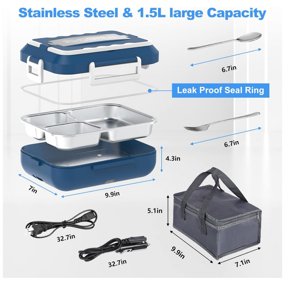 O pacote incluiA caixa do aquecedor é projetada para um bom apetite para o almoço com comida saudável quente e equilibrada. O pacote inclui lancheira elétrica x 1, saco isolado x 1, colher x 1, garfo x 1, cabo de alimentação 12V, 24V x 1 e cabo de alimentação 110V x 1