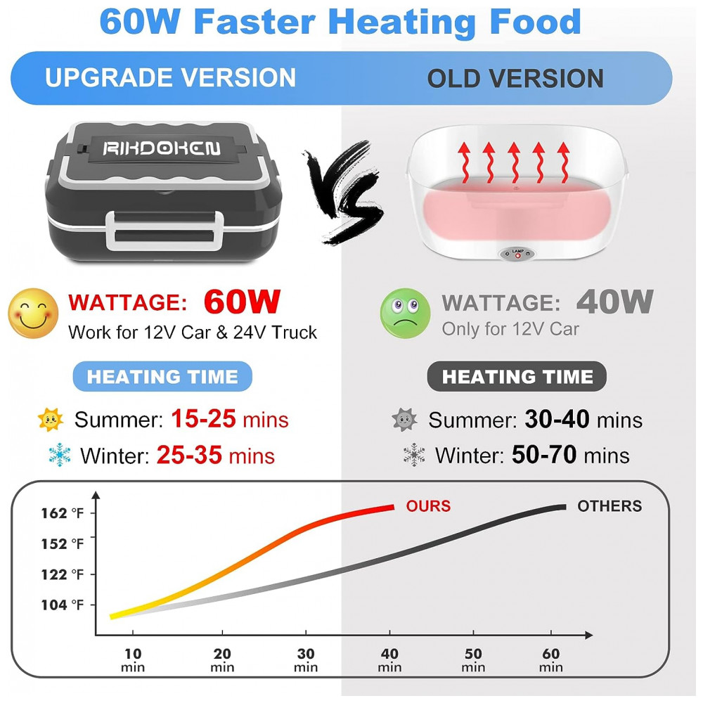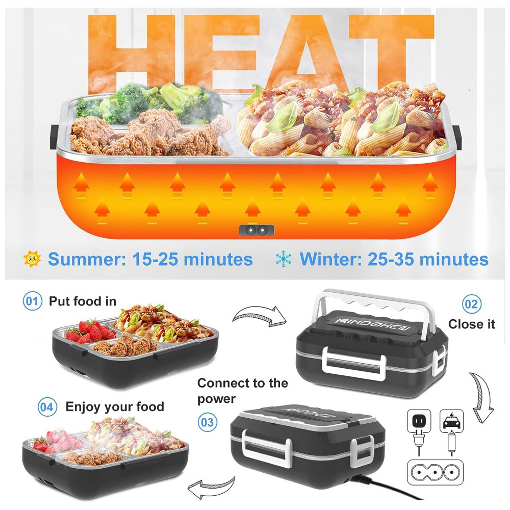 Aquecimento mais rápido de 60WA lancheira de aquecimento elétrico usa aquecimento rápido de 60W, após fácil conexão, a comida esquenta em 20 a 30 minutos. Nosso aquecedor de almoço é projetado com ciclo de aquecimento PTC para manter a temperatura adequada, os alimentos nutritivos e preservar melhor o sabor dos alimentos.