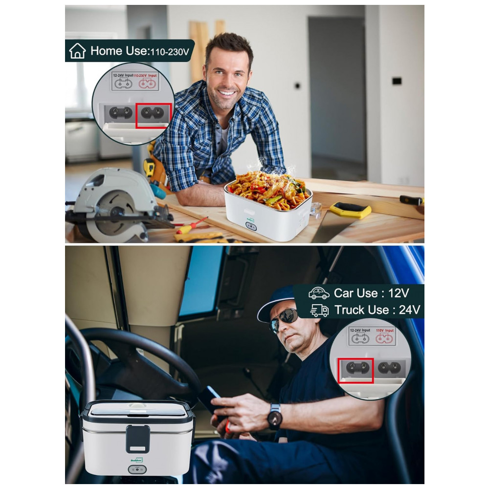 Lancheira elétrica 3 em 1 Em vez de comer fast food e sanduíches frios não saudáveis todos os dias, esta lancheira elétrica aquecida suporta 110 230V casa, escritório 12V carro e uso de caminhão 24V. motoristas de carro , caminhoneiro podem comer refeições quentes caseiras de forma saudável em movimento, trabalhadores da construção civil e trabalhadores de escritório podem desfrutar de refeições quentes no canteiro de obras ou no escritório.