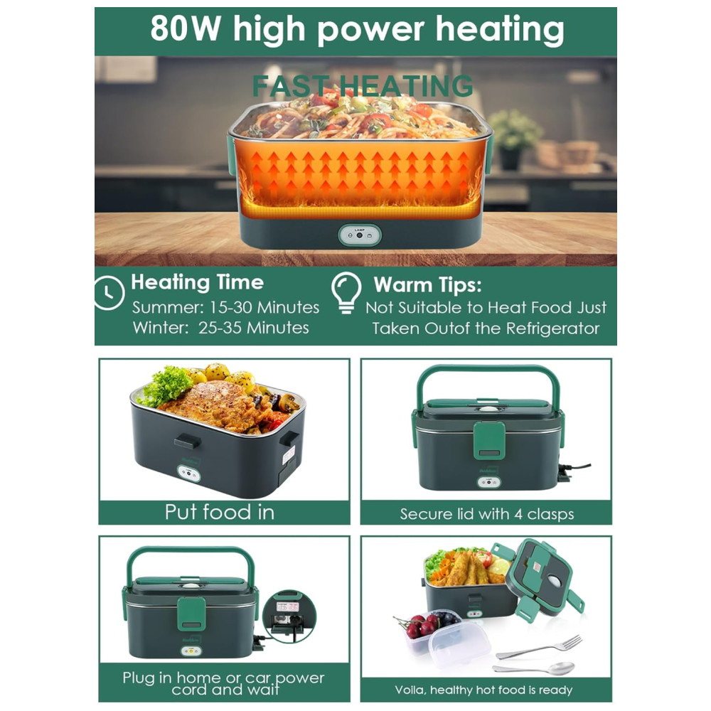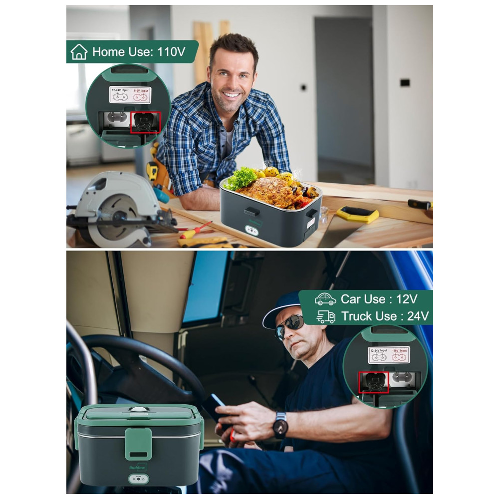 Lancheira elétrica 3 em 1 Em vez de comer fast food e sanduíches frios não saudáveis todos os dias, esta lancheira elétrica aquecida suporta 110 230V casa, escritório 12V carro e uso de caminhão 24V. motoristas de carro , caminhoneiro podem comer refeições quentes caseiras de forma saudável em movimento, trabalhadores da construção civil e trabalhadores de escritório podem desfrutar de refeições quentes no canteiro de obras ou no escritório.