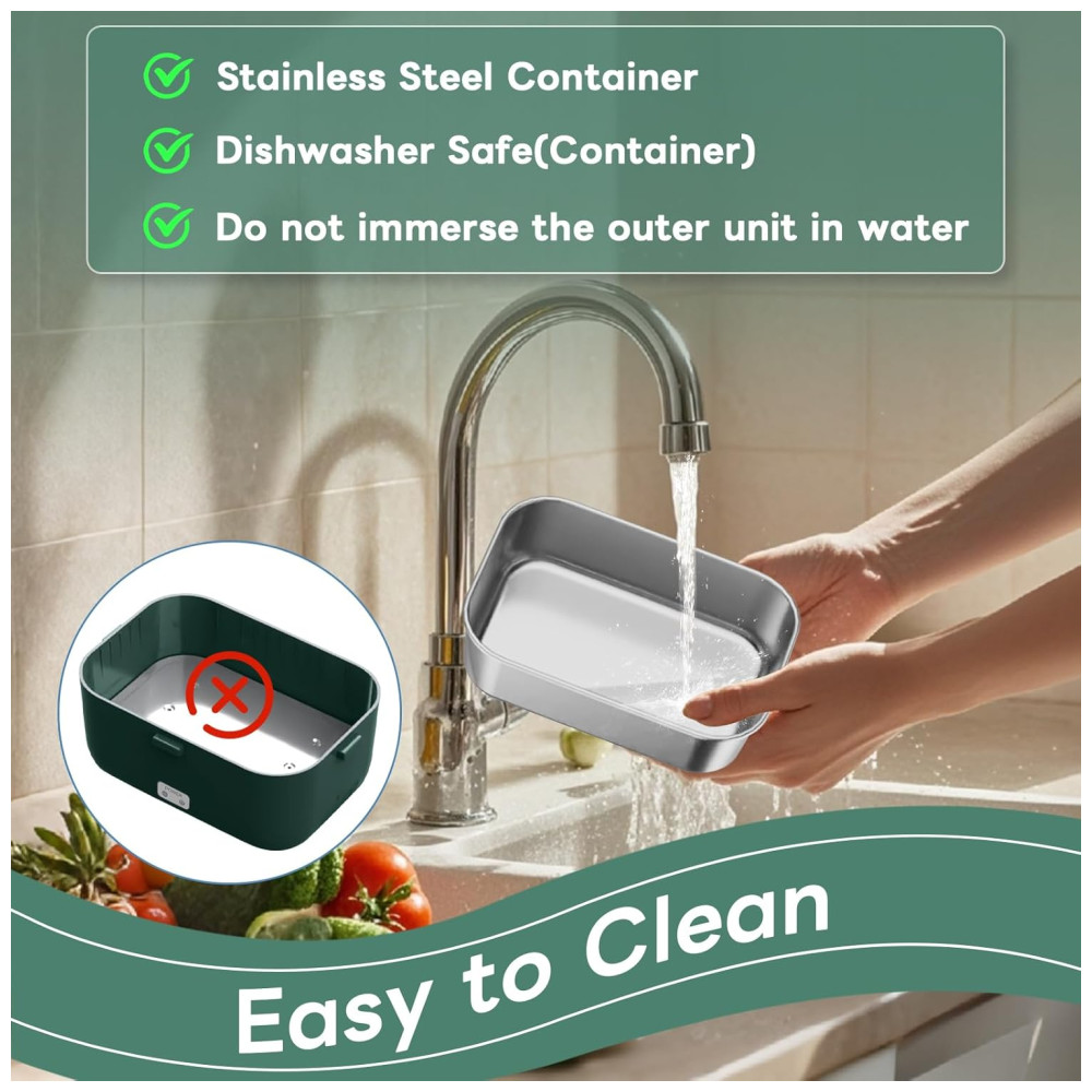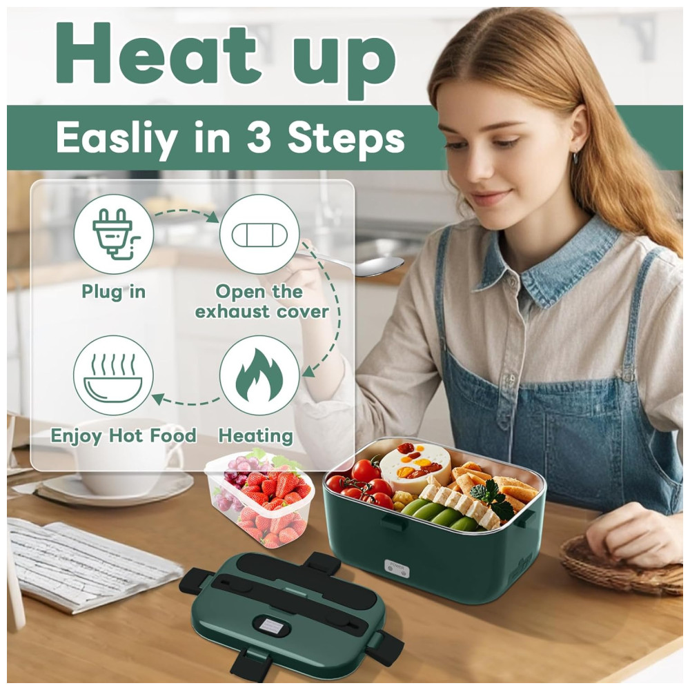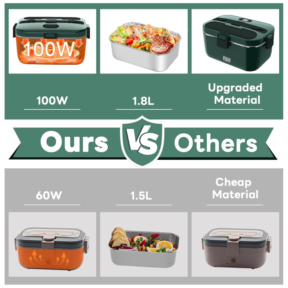 Aquecimento rápido de 60W Nossa lancheira de aquecimento elétrico usa uma fonte de alimentação atualizada de 60W para aquecimento. Uma vez conectada, a lancheira de aquecimento aquecerá em 25 a 35 minutos. Esta lancheira para aquecimento de alimentos foi projetada com calor circulante para manter sua comida nutritiva e fresca. Ele não apenas aquece suas refeições rapidamente, mas também é fácil de limpar e pode ser lavado na lava louças.