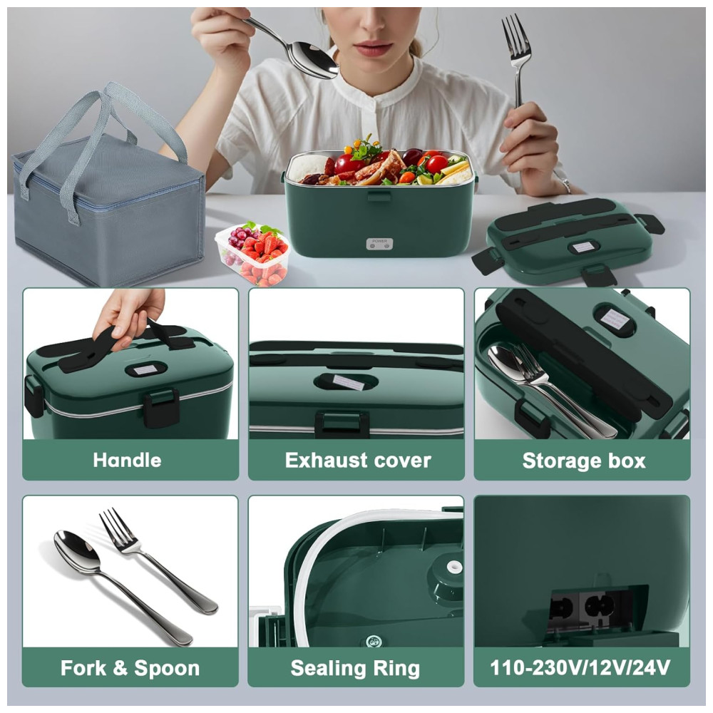 Lancheira elétrica 3 em 1 Você está sempre ocupado e precisa comer comida fria A partir de agora, com a nossa lancheira elétrica, poderá desfrutar de refeições quentes a qualquer hora e em qualquer lugar Esta lancheira elétrica aquecida suporta 110 V em casa, escritório 12 V em carro e 24 V em caminhão. Você vai adorar esta lancheira aquecida.