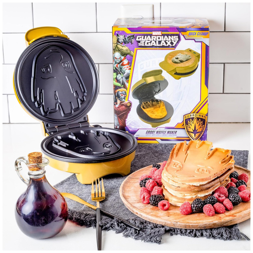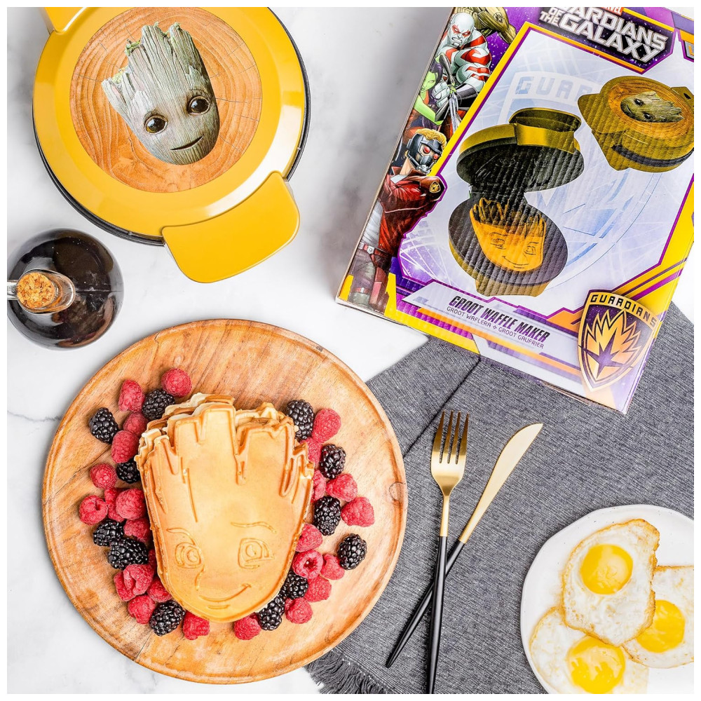Marvel Groot Máquina de Waffle Antiaderente 110v UNCANNY BRANDS WM MVM GRT Amarelo