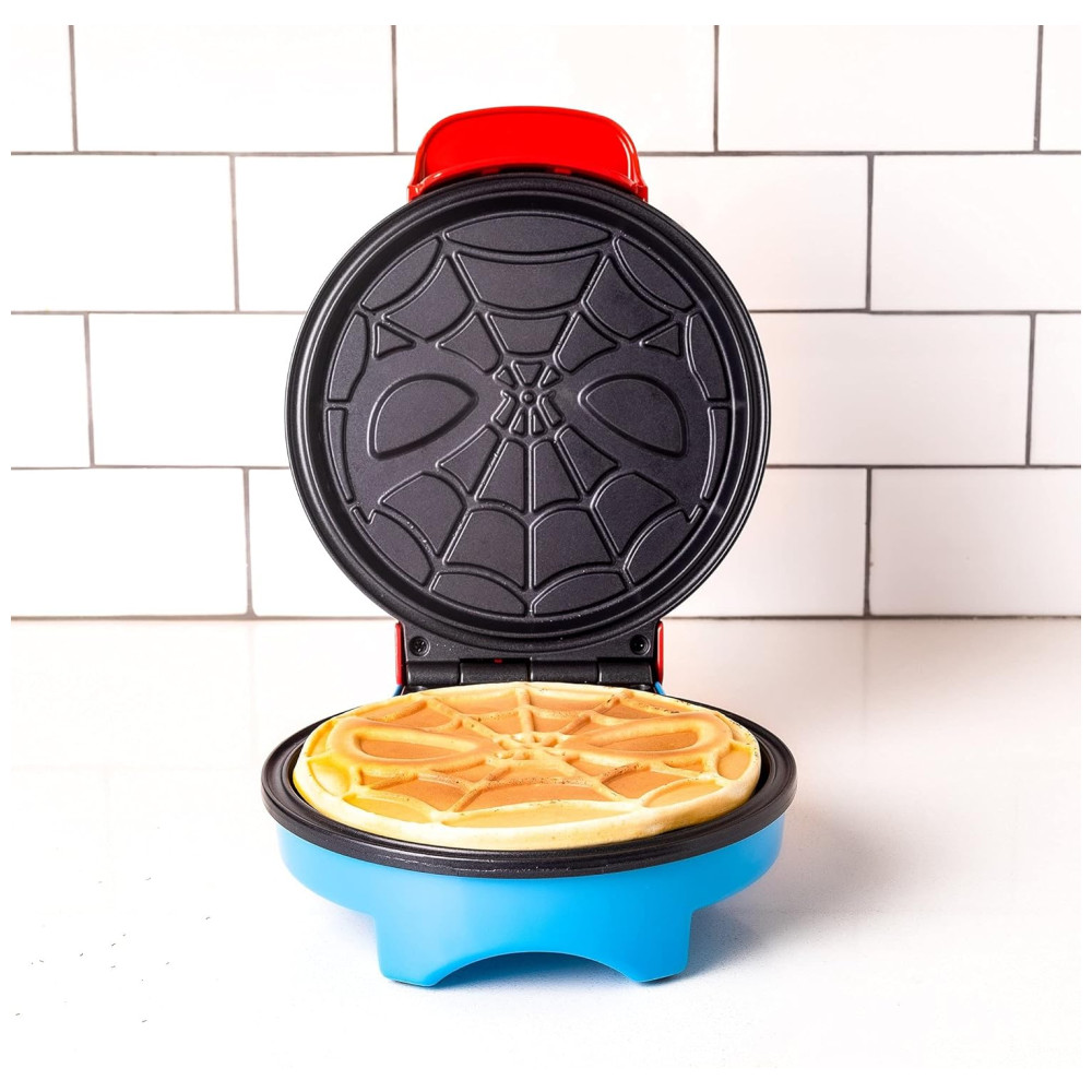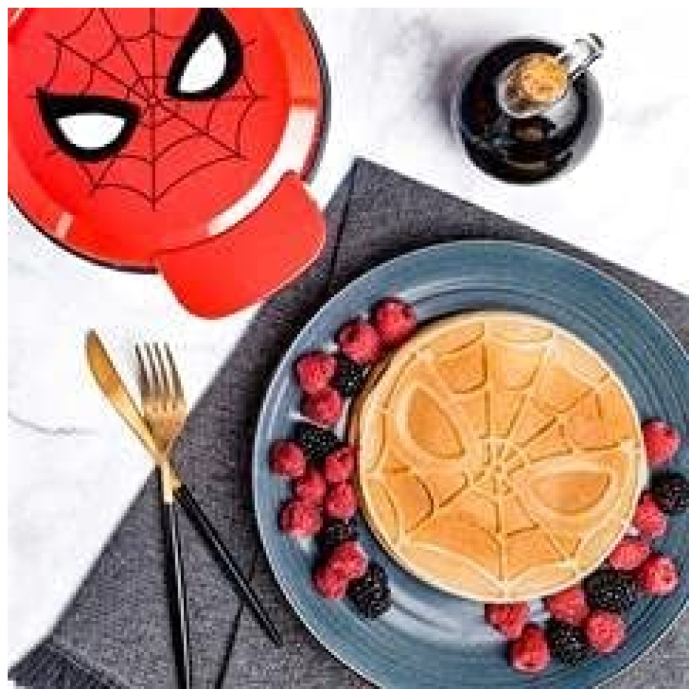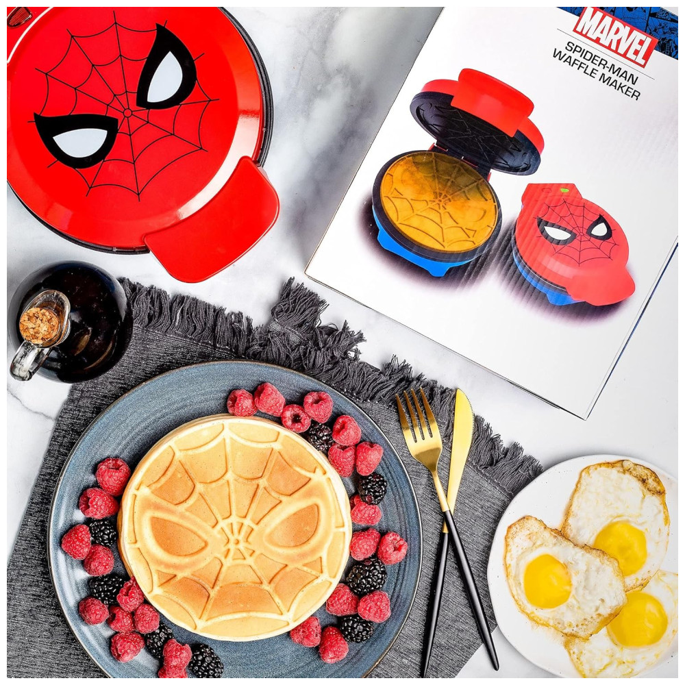 Maravilha Spiderman Waffle Maker Máscara de Aranha nos Seus Waffles Waffle Iron Spidey chega à sua cozinha com esta impressionante máquina de waffles em cores. Placas de alumínio fundidas detalhadas no interior são fáceis de limpar e dão sempre uma impressão perfeita da cabeça do Homem Aranha. Despeje massa, ovos, brownies, batatas raladas ou o que mais lhe agrada. As luzes indicadoras duplas informam quando é hora de servir a massa e quando os waffles estão cozidos. Seja um super herói em todas as refeições. Fabricante de waffles Spider Man da Marvel Detalhes do produto SPIDERMAN WAFFLE MAKER Faça waffles amigáveis da vizinhança em casa. Despeje a massa, abaixe a tampa e, antes que você perceba, há o logotipo de Spidey, pronto para manteiga e calda FAZ 2 WAFFLES DIFERENTES DE TAMANHO Crie waffles de 15cm da máscara do Homem Aranha ou waffles redondos maiores de 18cm derramando a massa sobre o prato inteiro. DECORAÇÃO DE COZINHA DIVERTIDA O design vermelho e azul, com o logotipo icônico do swinger na web na tampa, certamente aumentará sua paisagem na cozinha. DÁ UM GRANDE PRESENTE Os waffles de Spidey são a maneira perfeita de espalhar a cultura pop para a cozinha de qualquer fã da Marvel
