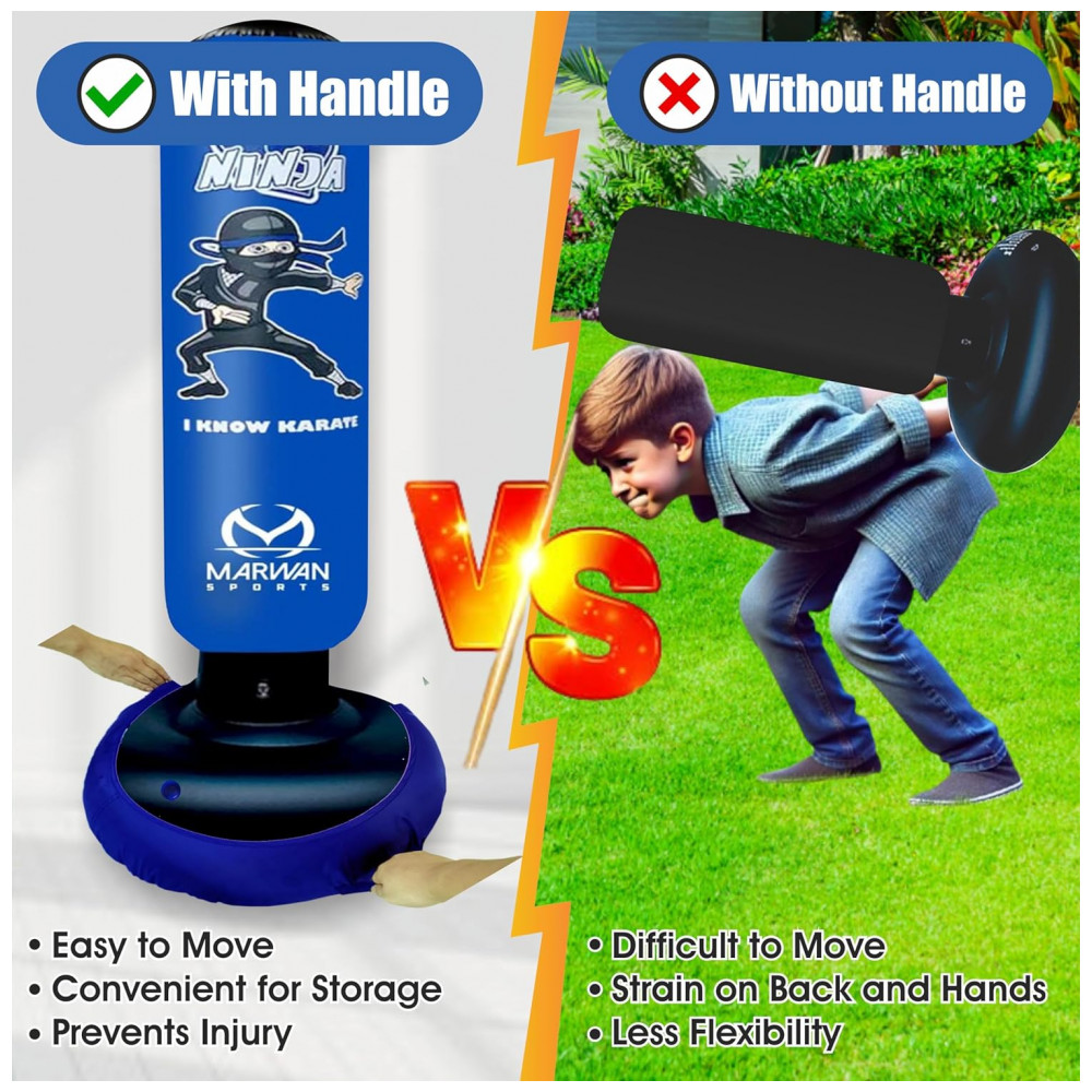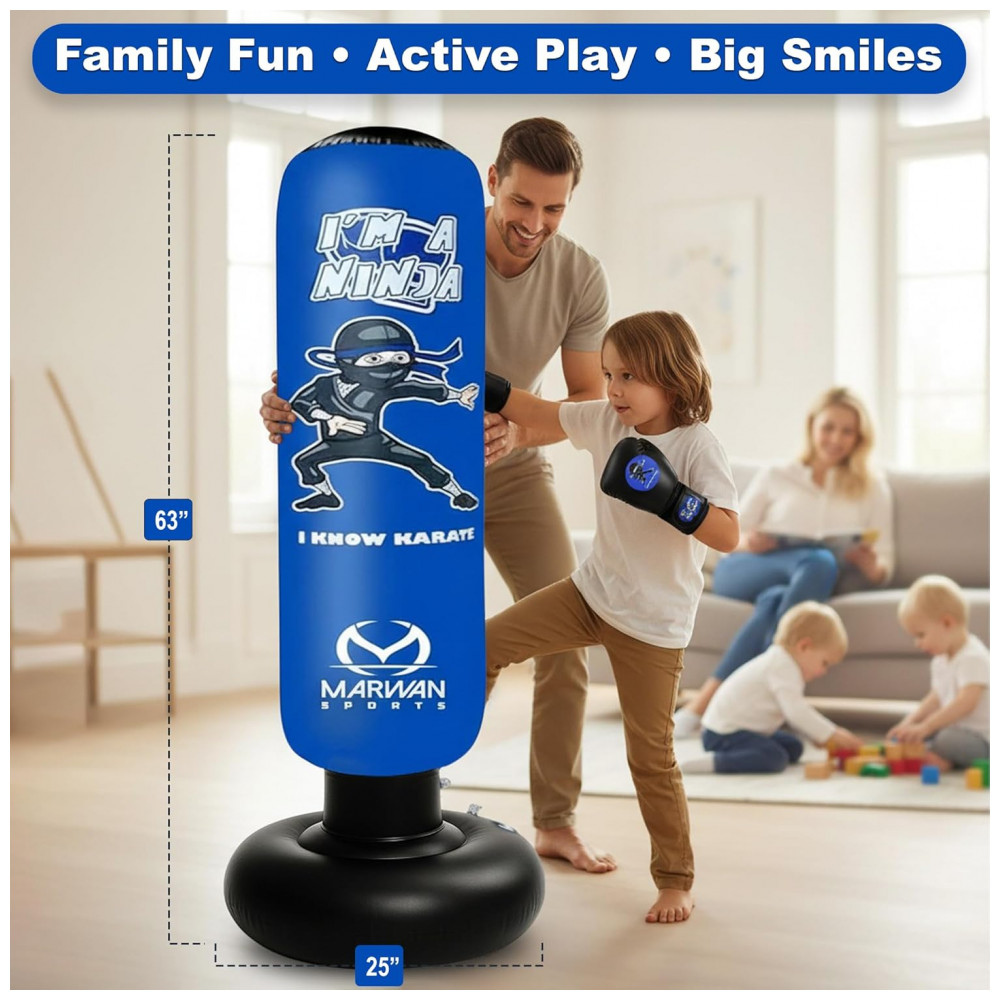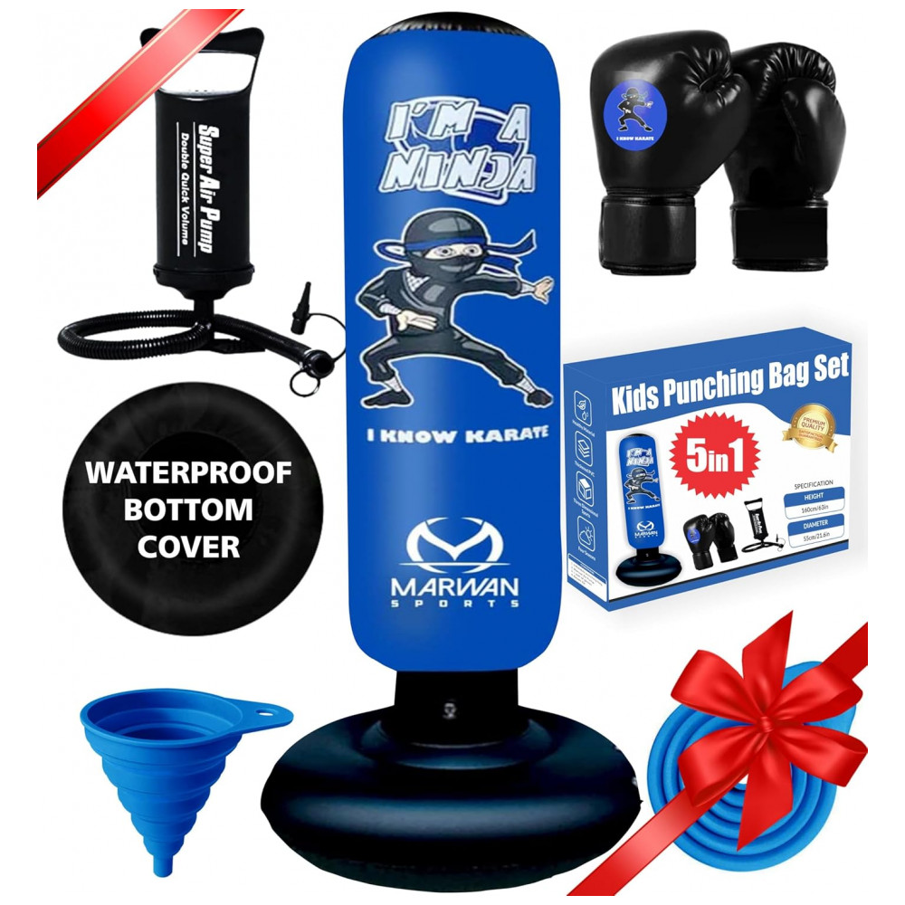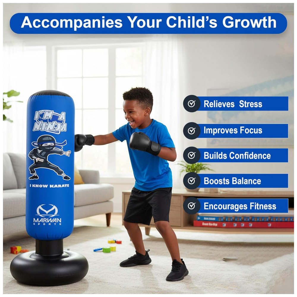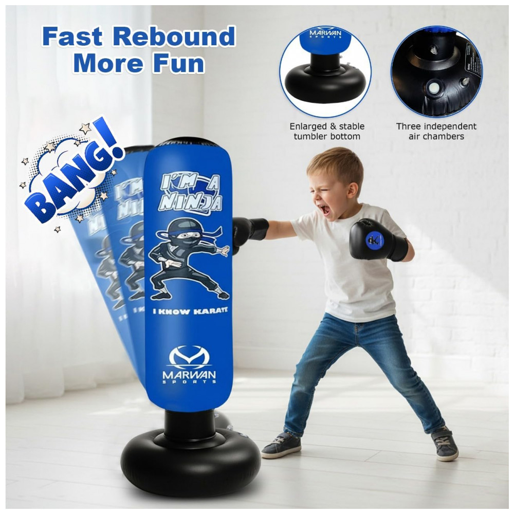 Marwan Sports Bolsa de Pancada Inflável 5 em 1 para Crianças com Luvas de Boxe – 160 cm Base Estável e Retorno Rápido