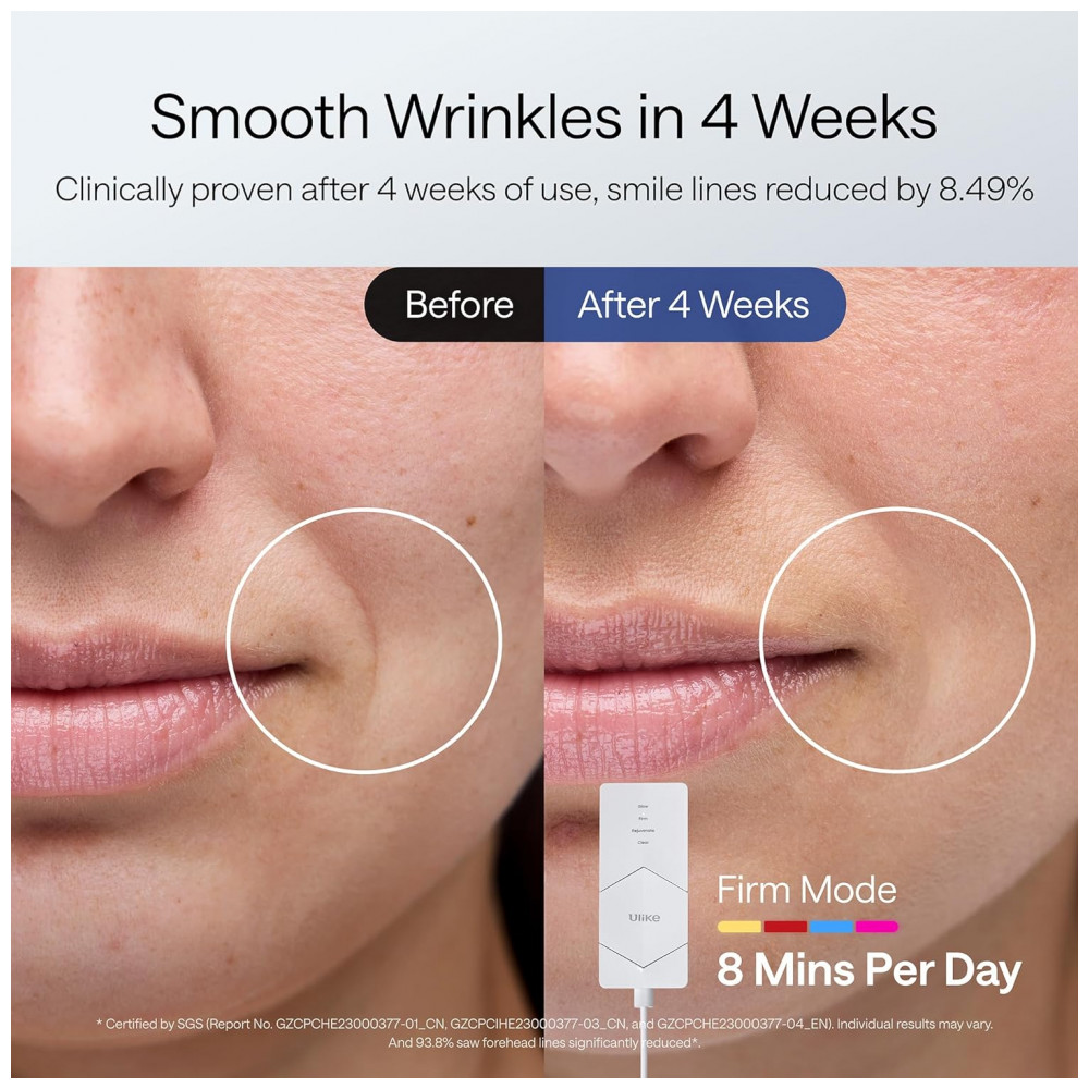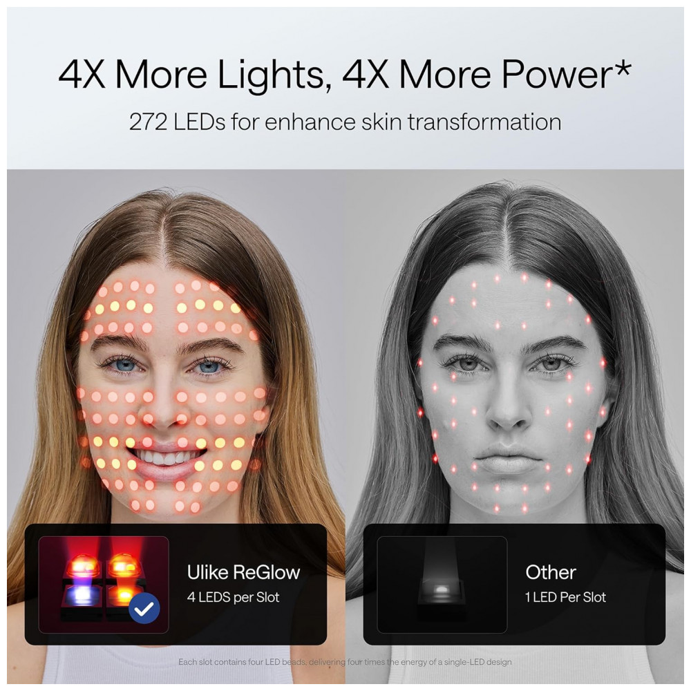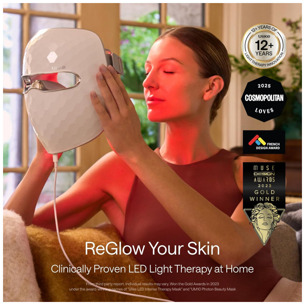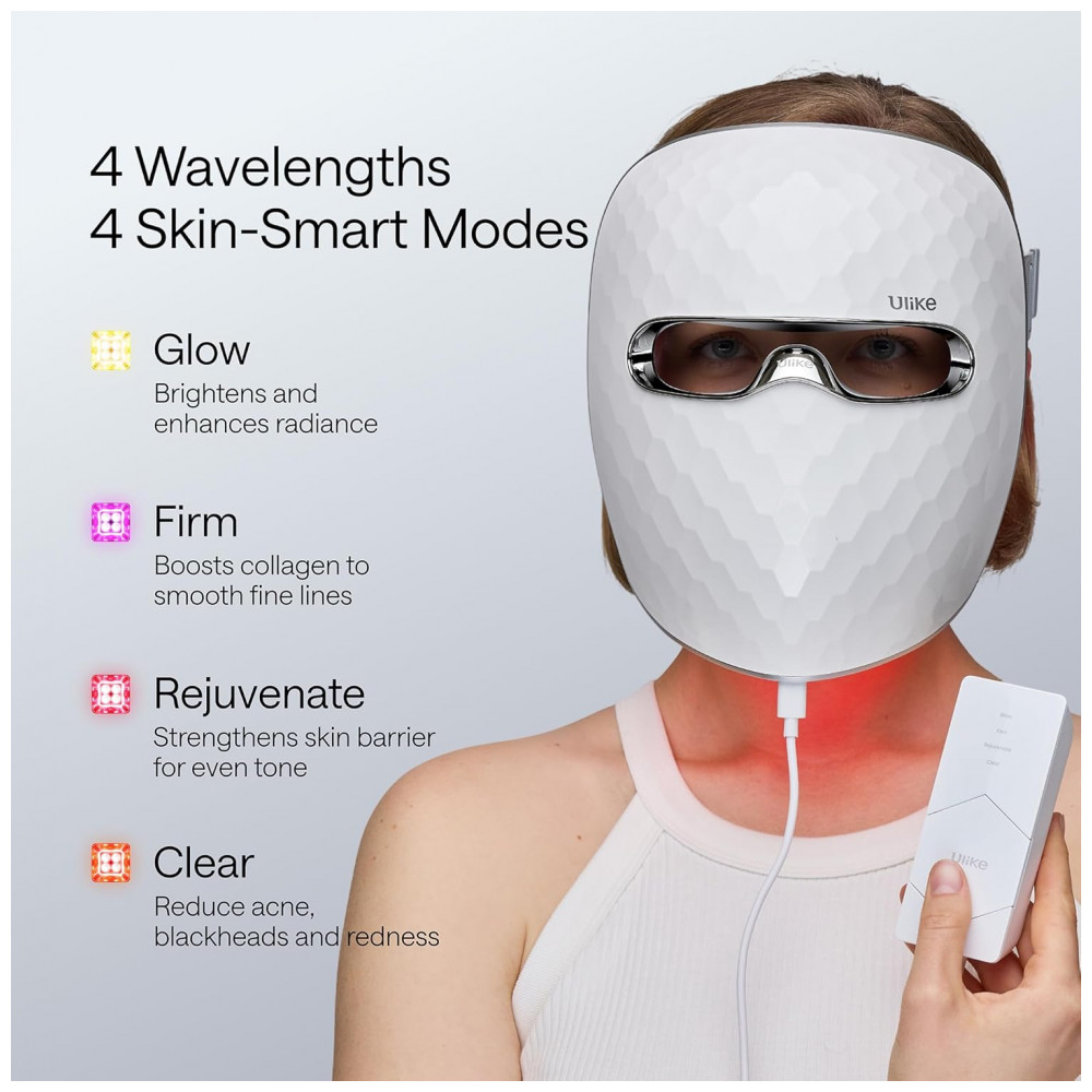 Desfrute de uma pele mais brilhante e suave com a Máscara de Terapia de Luz LED Ulike ReGlow, que proporciona resultados visíveis em apenas 8 minutos por dia. Reduz manchas e vermelhidão em apenas 2 semanas e suaviza linhas finas e rugas em 4 semanas de uso consistente. Conquiste uma pele mais jovem e saudável, tudo no conforto do seu lar. Com 4 modos para reduzir acne e suavizar rugas, esta máscara oferece modos Glow, Firm, Rejuvenate e Clear, cada um projetado para benefícios específicos na pele. Utilizando luz vermelha, amarela, azul e infravermelha, ajuda a reduzir sinais de envelhecimento, diminuir vermelhidão e manchas, melhorar a firmeza da pele e aumentar o brilho. Escolha o modo que melhor atenda às necessidades da sua pele para uma experiência de tratamento personalizada.