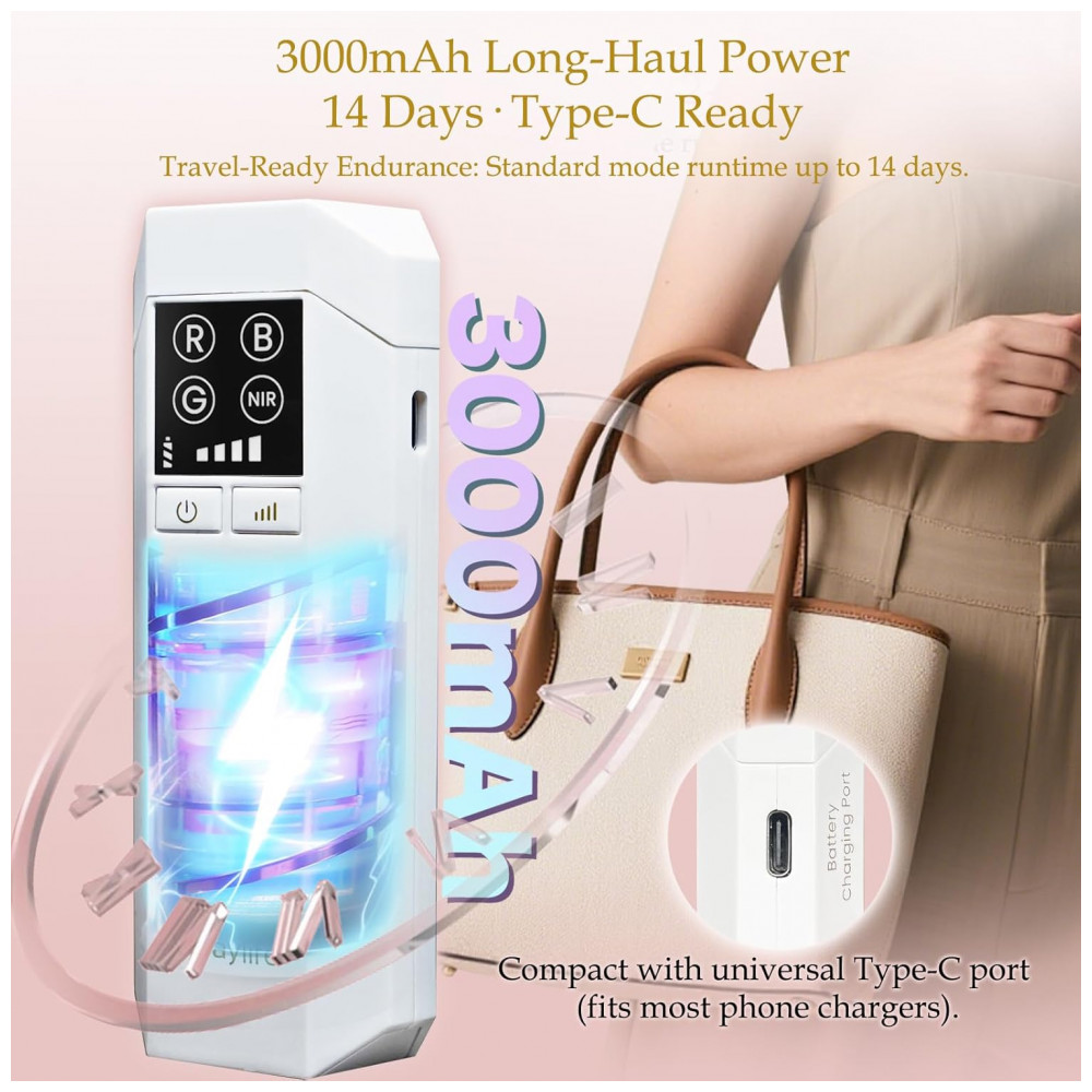 O Dispositivo Facial de Tecnologia de Luz Inteligente possui 108 LEDs com 432 feixes focados que emitem 850nm de infravermelho próximo. Com 8 modos, incluindo 7 cores com ciclo automático estudado para radiância da pele. Design de Máscara Facial Confortável com Tecnologia de Iluminação Direcionada permite foco ajustável, sendo leve e adequado para todos os tipos de pele. Dispositivo Portátil para Cuidados com a Pele possui bateria de 3000 mAh, timers por modo e design compacto para uso em viagens, pausas no trabalho ou deslocamentos. Sistema Completo de Cuidados Faciais com LED inclui máscara, 2 alças, protetores oculares, controle, cabo USB-C e manual. Embalagem de presente de luxo com suporte ao produto por 12 meses.