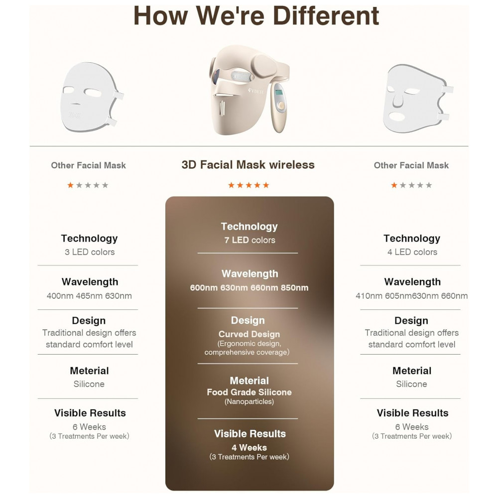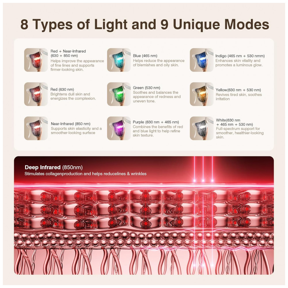 Experimente a revolucionária Máscara de Terapia com Luz Vermelha de 9 modos para o rosto! Com 9 modos direcionados, incluindo vermelho, infravermelho, azul, amarelo, verde e mais, esta máscara de terapia utiliza 480 LEDs de alta energia para melhorar a elasticidade, a luminosidade e a saúde da pele facial. Recarregável com 2500mAh, oferece até 120 minutos por carga, permitindo uso em qualquer lugar. Seu design ergonômico 3D garante conforto máximo, sendo leve e portátil. Aproveite resultados profissionais em casa, sem a necessidade de visitas ao salão!