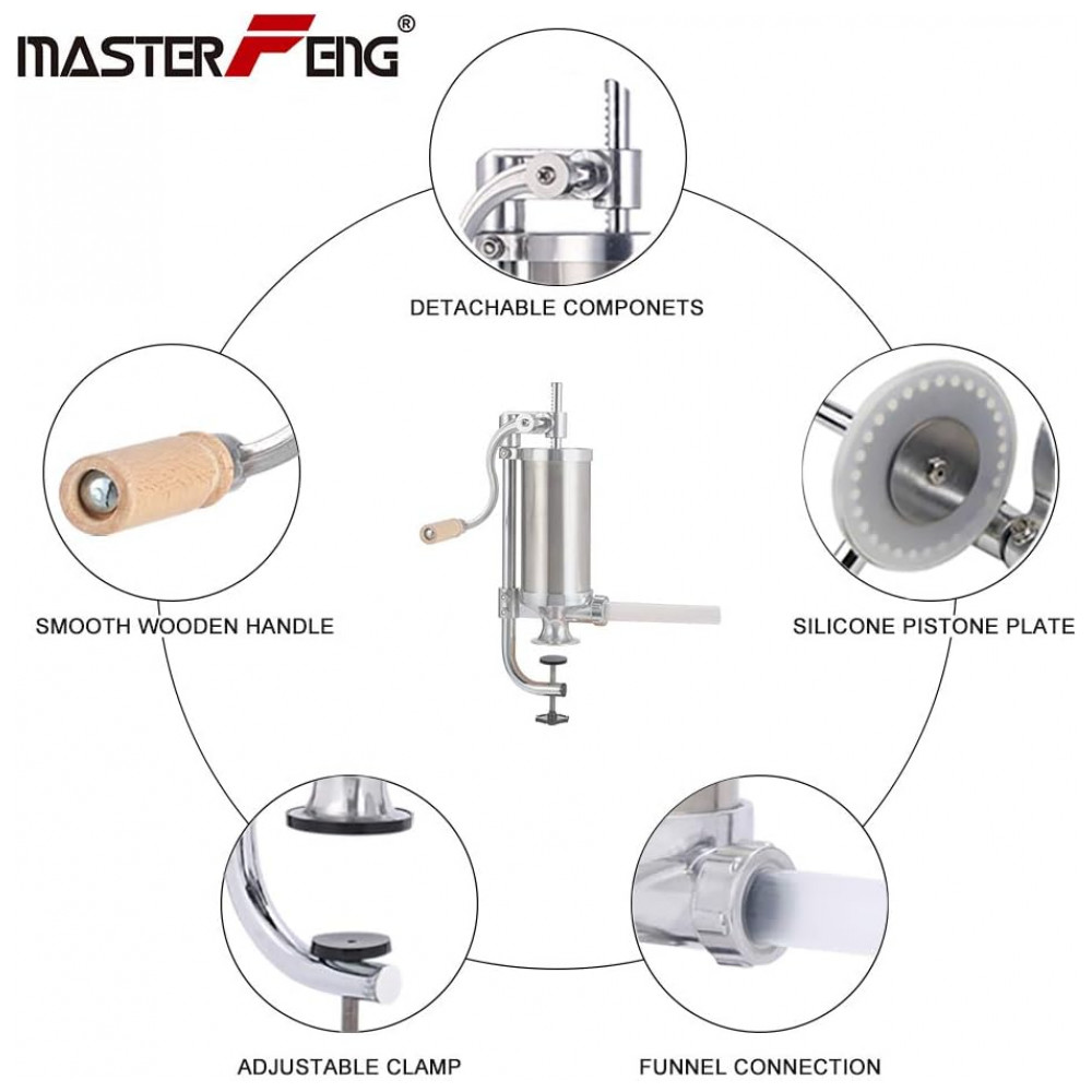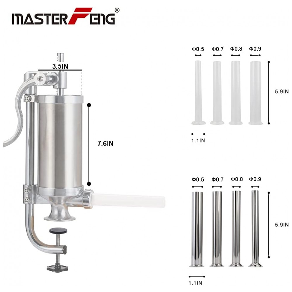 MASTER FENG Máquina de Fazer Linguiças em Aço Inoxidável Salsicheira Vertical para Encher Carnes na Cozinha Inclui 8 Tubos de Enchimento