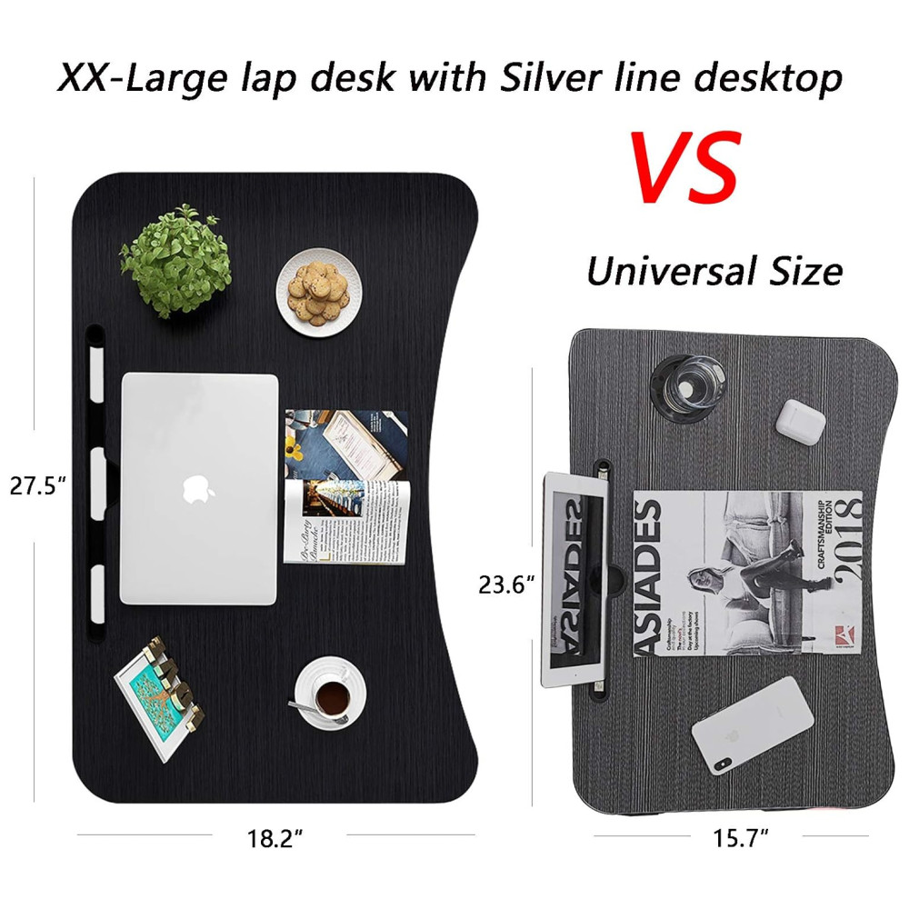 A mesa de colo XXL é maior do que a maioria das mesas. É um bom uso para comer o café da manhã, ler um livro, assistir a um filme na cama , sofá , sofá , chão