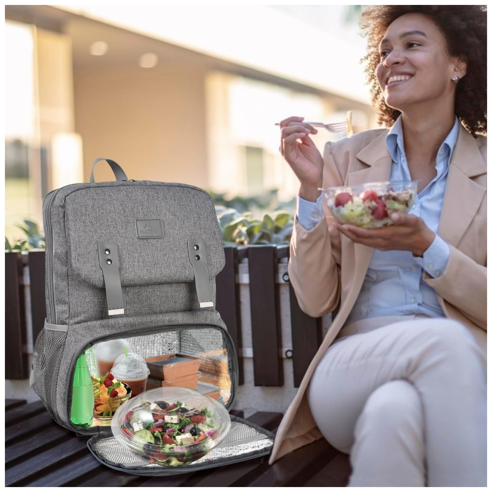 FUNÇÃO DE REFRIGERAÇÃO ISOLADA E À PROVA DE VAZAMENTO As lancheiras MATEIN para mulheres adotam um tecido Oxford amigável ao meio ambiente e durável e folha de alumínio isolante, que pode manter os alimentos frescos por 2 4 horas e proteger o material escolar de molhar. Os materiais atóxicos na lancheira tornam a sua alimentação mais segura. A bolsa térmica da mochila escolar é adequada para refeições de trabalho, refeições de piquenique, churrascos ao ar livre, gerenciamento de alimentos, viagens ou compras. Dimensão do compartimento da geladeira 25 x 13 x