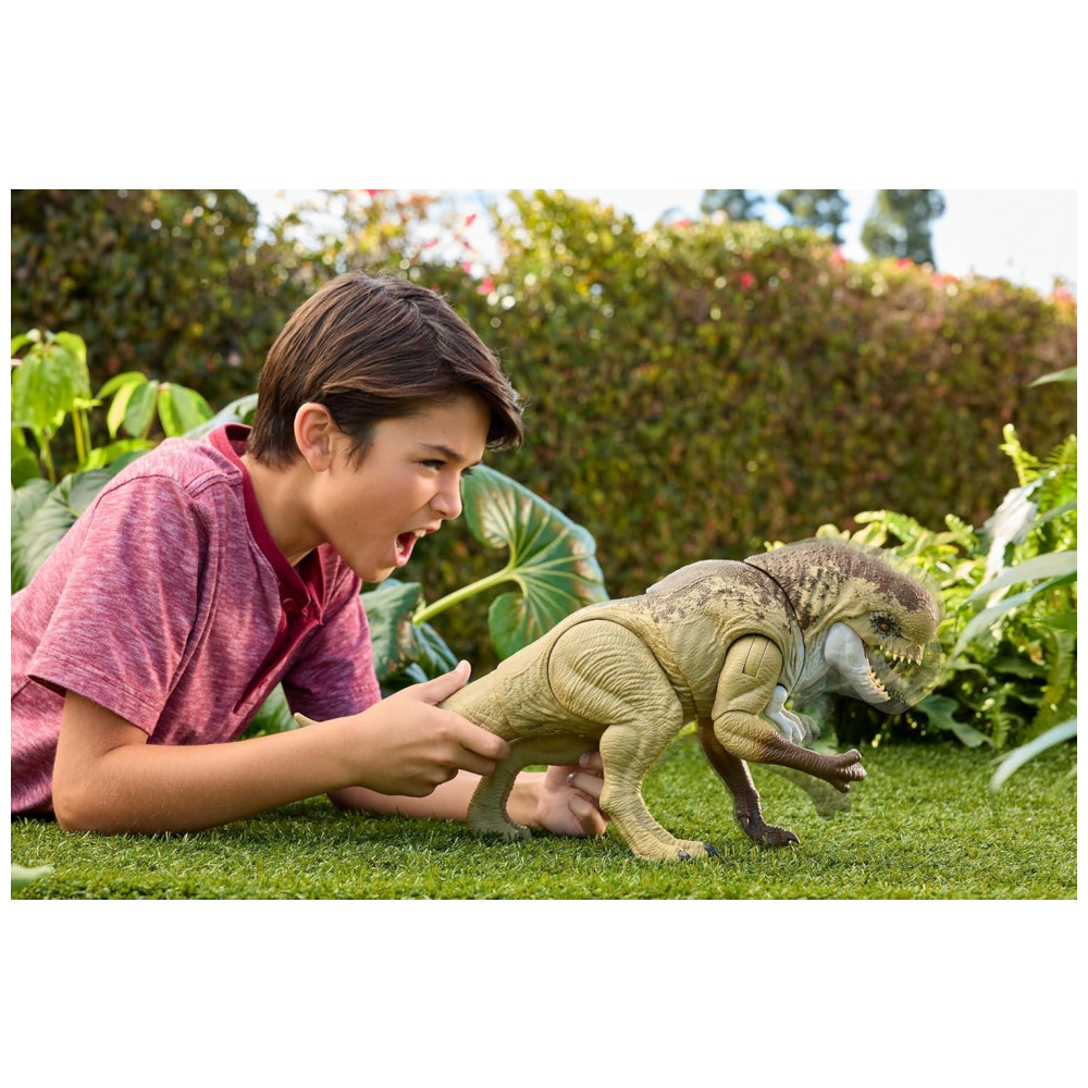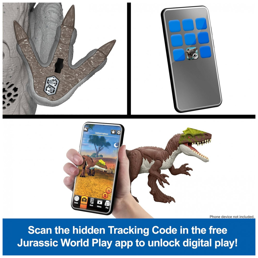 Este autêntico boneco de ação Villain1 Dino Rumble N Rampage, com seu visual característico do filme, traz a emoção de Jurassic World Rebirth para dentro de casa com um intimidante rugido de cabeça! Este dinossauro vilão do filme também possui movimentos duplos, com rugido e mordida e um golpe de braço lateral de um lado para o outro, é um ataque total! Articulações móveis e um design preciso e fiel ao conteúdo tornam o Villain1 Dino pronto para movimentos e poses de batalha. Escaneie o Código de Rastreamento no pé do dinossauro no aplicativo gratuito Jurassic World Play com um dispositivo inteligente compatível Android ou iOS, não incluído, para desbloquear uma versão digital do dinossauro e jogar o jogo freneticamente divertido para correr com vários veículos em terra, ar e mar. Um ótimo presente para fãs de dinossauros a partir de 4 anos. Cores e decorações podem variar. Leve Jurassic World para casa! Este Rumble N Rampage Villain1 Dino traz a emoção e a adrenalina de Jurassic World Rebirth para casa com um design autêntico do filme deste vilão supremo dos dinossauros. Rumble e rampage! Aperte o botão perto da cauda no Villain1 Dino para um intimidante rugido de cabeça que complementa seu ataque de mordida e rugido! Ataque total! Gire a cauda para outro ataque violento, um selvagem golpe de braço em balanço! Ótimo presente! Este Villain1 Dino é um presente emocionante para qualquer amante de dinossauros a partir de 4 anos, especialmente fãs de Jurassic World. Escaneie e colecione! Escaneie o código no pé do dinossauro no aplicativo gratuito Jurassic World Play com um dispositivo inteligente compatível, não incluído, para atividades de realidade aumentada e criar uma coleção digital de dinossauros! Corrida e Perseguição Colossal! Neste jogo de aplicativo atualizado, corra com vários veículos em terra, ar e mar e jogue um emocionante jogo de tiro que extrai ADN dos dinossauros!