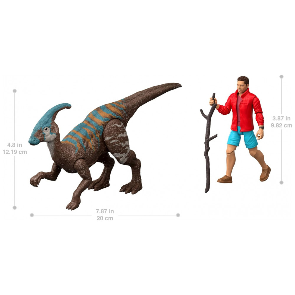 Modelo: Jurassic World Saga Human Dino Pack 4 Reuben Delgado & Parasaurolophus (código JGB86)
