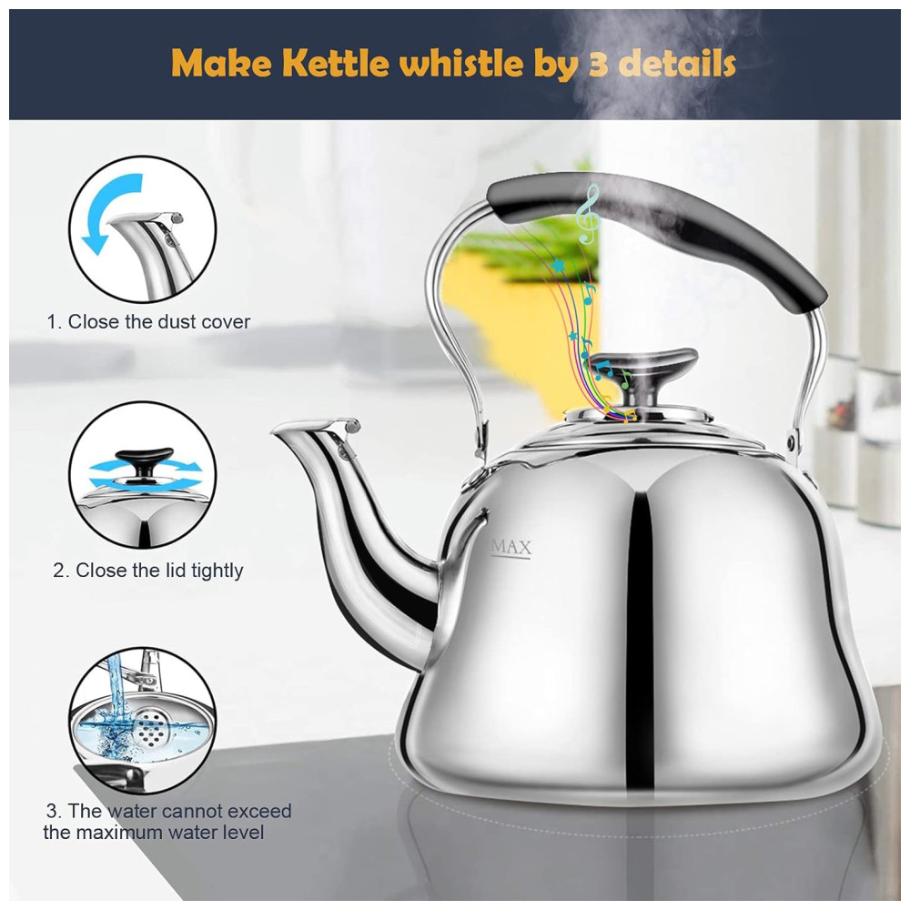 MAX Chaleira com Apito e Cabo ergonômico Aço Inoxidável AMFOCUS 2L Prateado