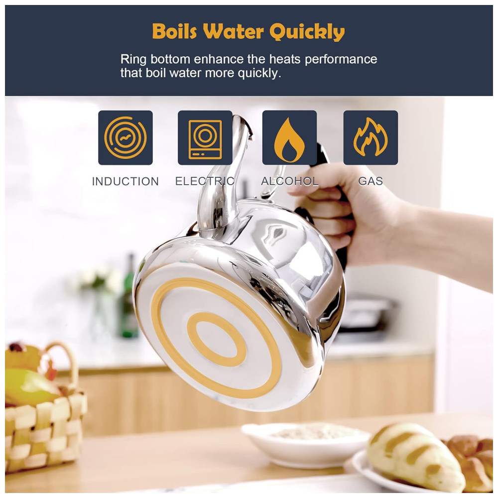 Bule especialmente elaborado base fina estética para aquecimento eficiente e uniforme. Ferva a água com eficiência para o seu chá verde, chá oolong, chá branco, chá preto gelado, chá de ervas, café francês ou outras bebidas de sua preferência.