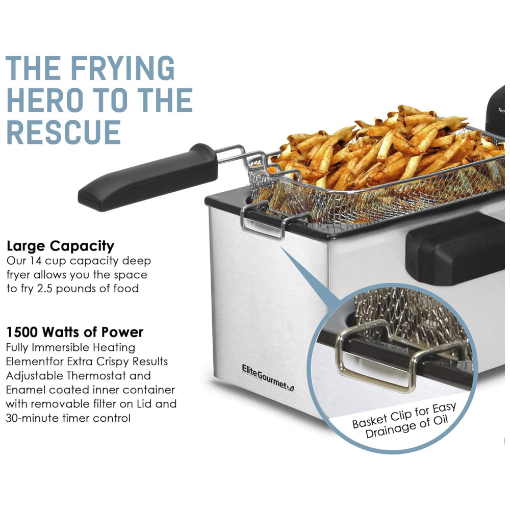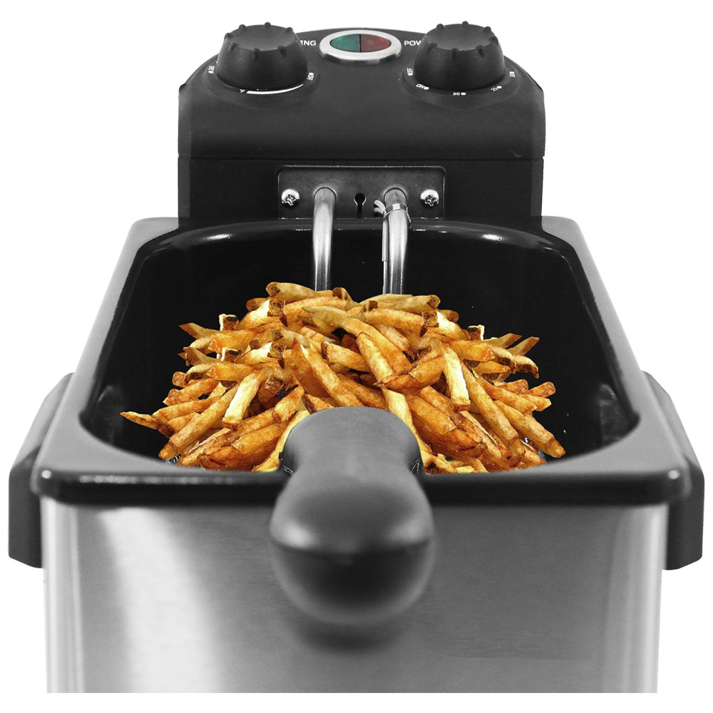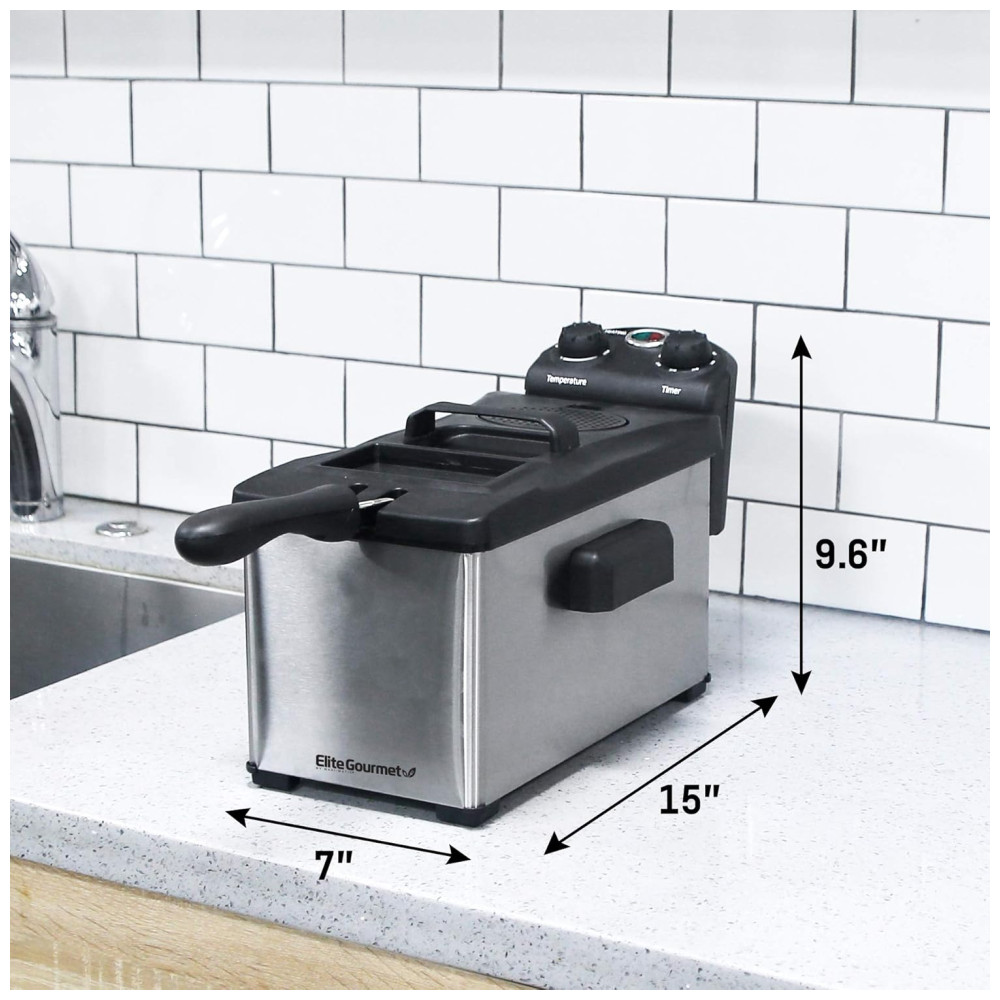 Maxi Matic Fritadeira Elétrica 3L Profissional Aço Inoxidável 1500W 110v ELITE GOURMET EDF 3500 Prateado