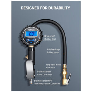 Medidor de Pressão Digital AstroAI com Inflador até 3250 PSI Precisão de 01 Mangueira de Borracha e Engate Rápido