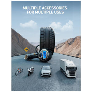 Com o Medidor de Pressão AstroAI você terá sempre a leitura precisa da pressão dos pneus, com margem de erro de apenas 1 unidade. Este versátil medidor é capaz de medir em PSI, KPA, Bar e Kg/cm², atendendo a uma ampla gama de aplicações. Possui tela retroiluminada em LED e inclui inflador, bico de travamento reto, mangueira, válvula de sangria, tudo em um único dispositivo. Mantenha seus pneus calibrados para garantir melhor desempenho em todas as condições climáticas, economizando combustível e prolongando a vida útil dos pneus. Construído com aço inoxidável e latão de alta qualidade para durabilidade excepcional. Ideal para veículos de todos os tipos, inclusive carros, motos, bicicletas e RVs. Além disso, conta com recurso de desligamento automático para preservar a vida útil da bateria e válvula de sangria para redução rápida da pressão em pneus superinflados.